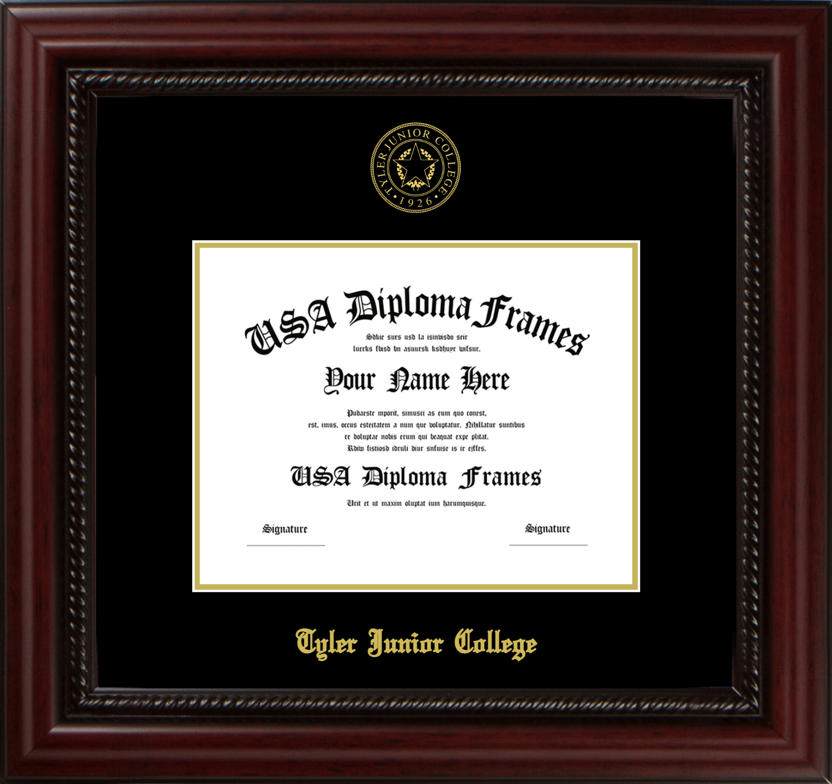 Tyler Junior College Diploma Frame – Associates 7×9 – Executive Cherry Rope – Black and Gold Mat