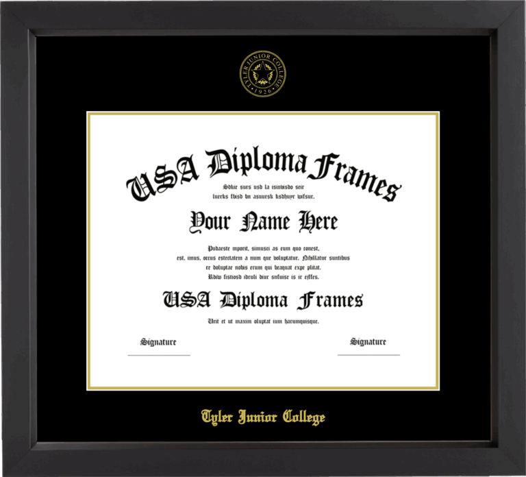 Tyler Junior College Diploma Frame – Black Matte – Black and Gold Mat – 11×14