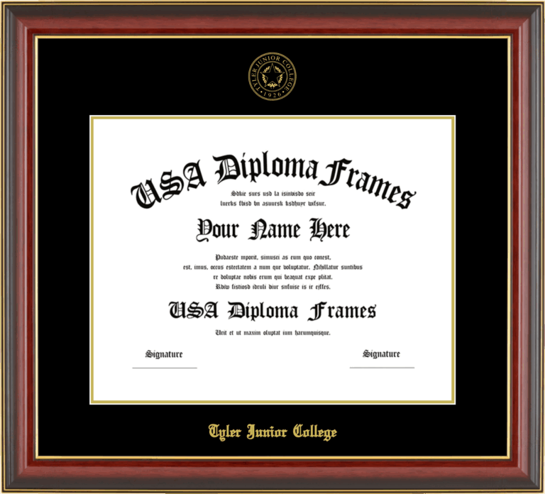 Want to explore more styles? Browse our full range of diploma frame layouts, or visit the Tyler Junior College to view options available for your school. Looking for a fully personalized design? Try our custom Frame Builder and create a frame that’s uniquely yours.