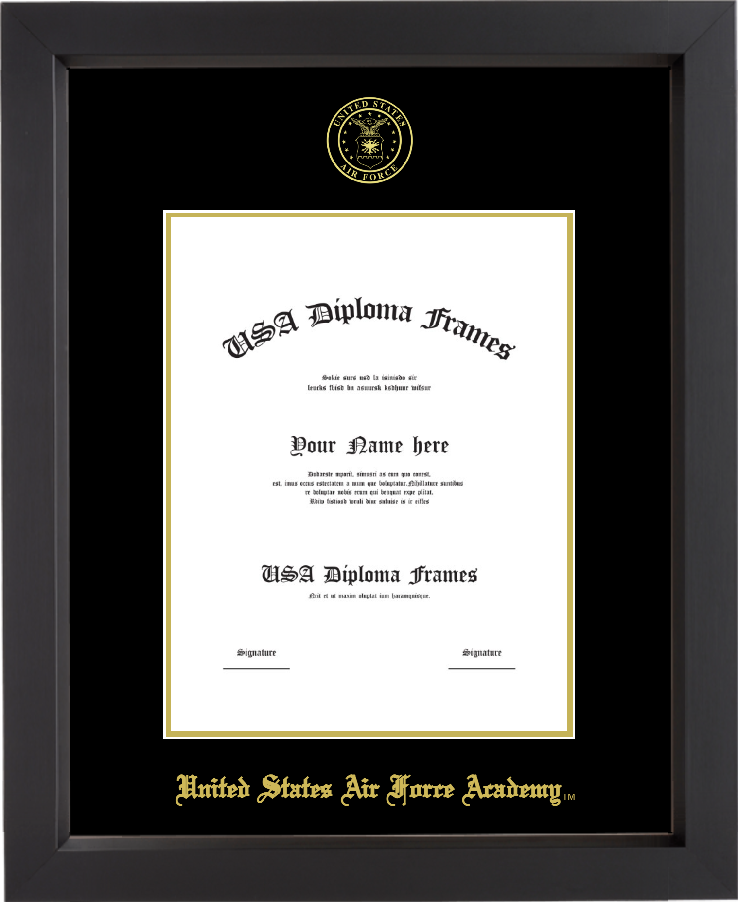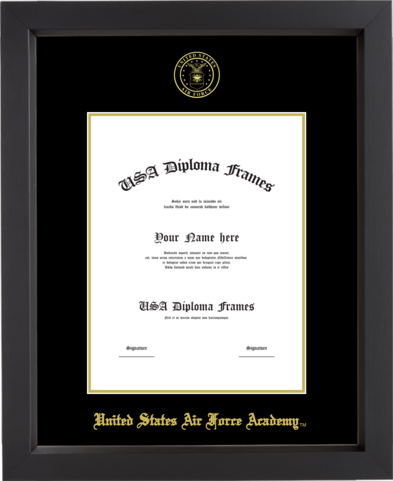 United States Air Force Academy Diploma Frame (Bachelors) – Black Matte – Black and Gold Mat