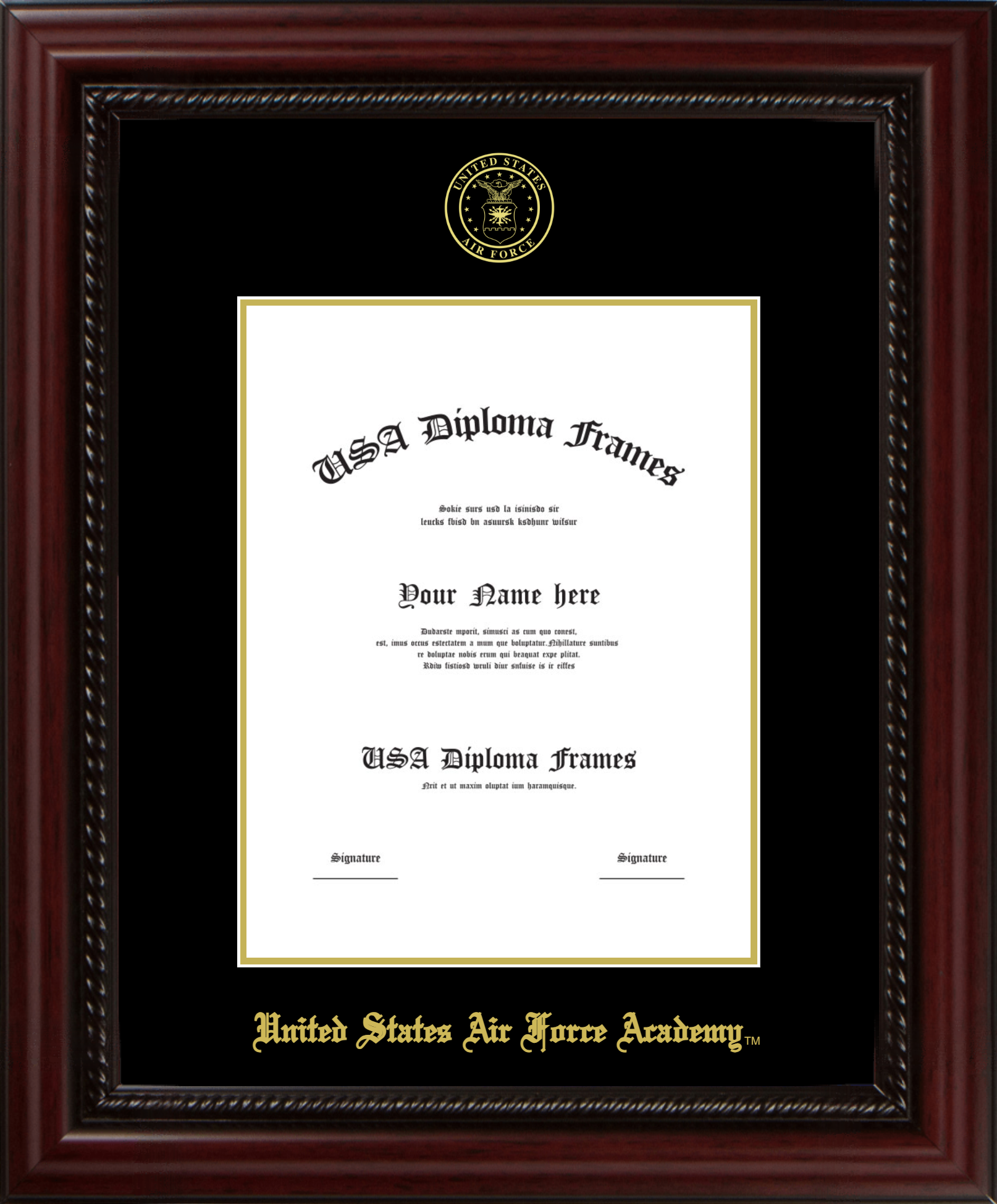 United States Air Force Academy Diploma Frame (Bachelors) – Executive Cherry Rope – Black and Gold Mat