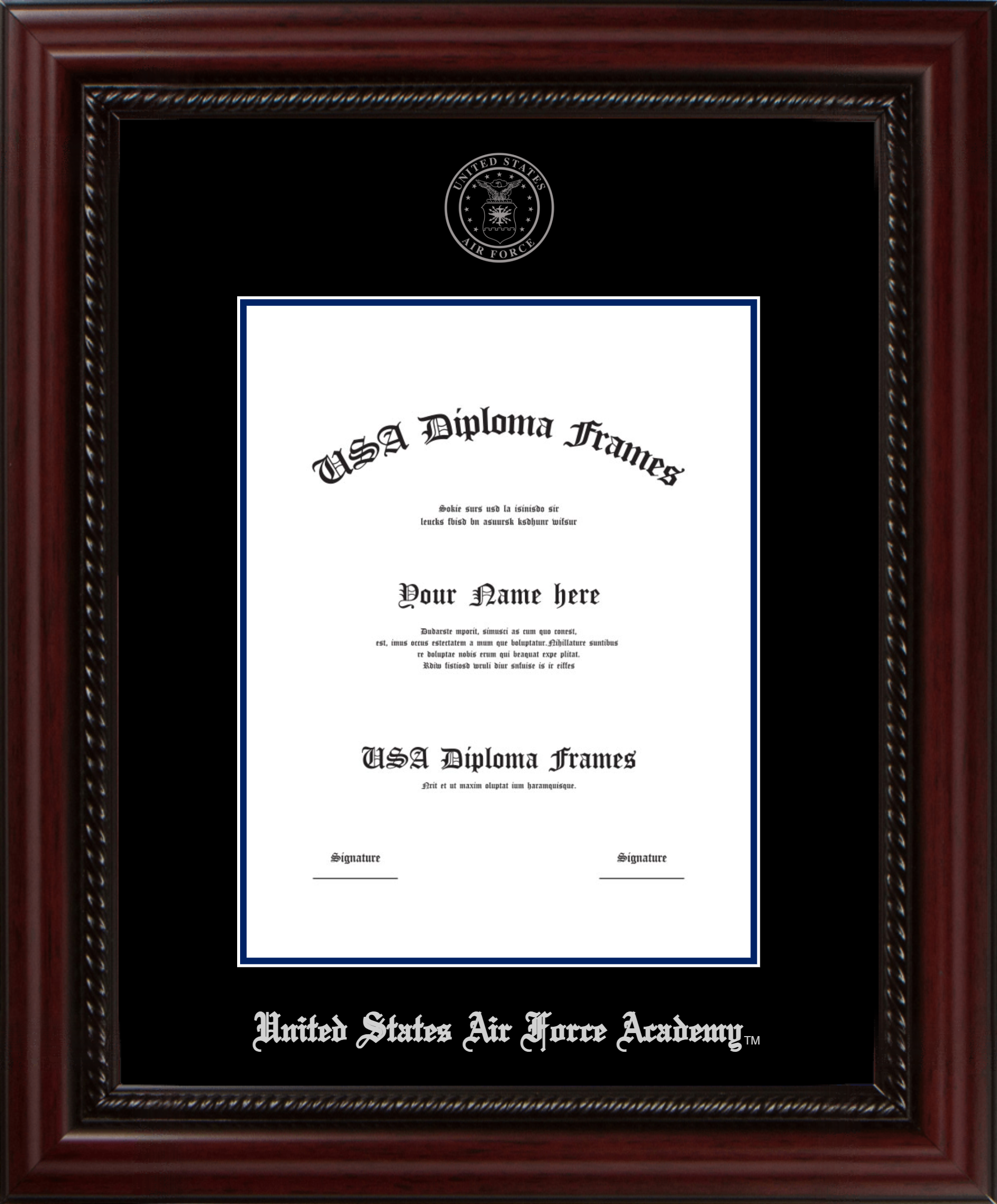 United States Air Force Academy Diploma Frame – Executive Cherry Rope – Black and Navy Mat – Silver Seal – 11×8.5