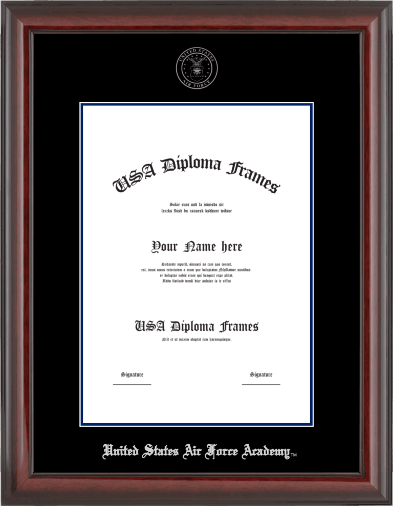United States Air Force Academy Diploma Frame – Cherry Mahogany Glossy – Black and Navy Mat – Silver Seal – 14×10 Certificate