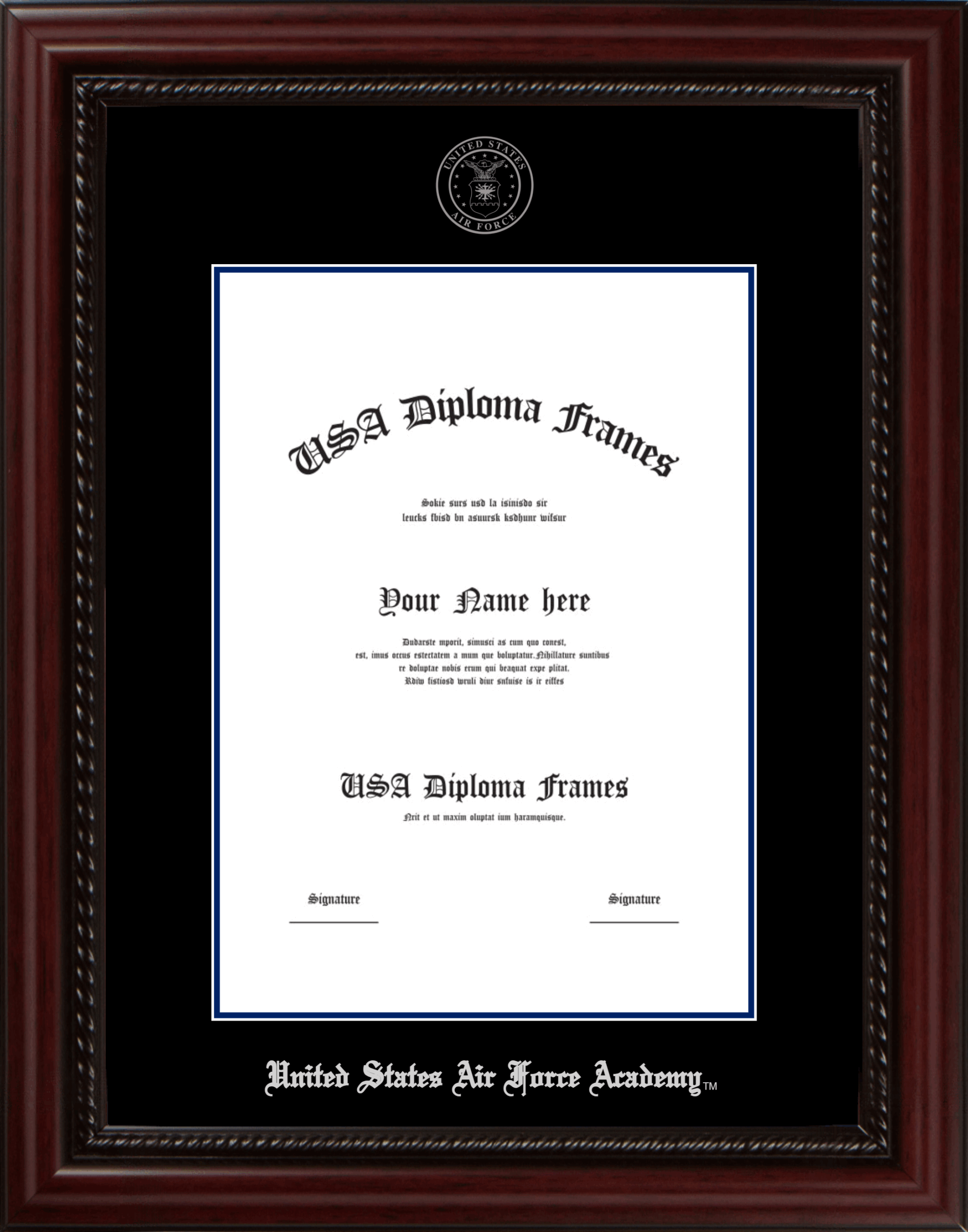 United States Air Force Academy Diploma Frame – Executive Cherry Rope – Black and Navy Mat – Silver Seal – 14×10 Certificate