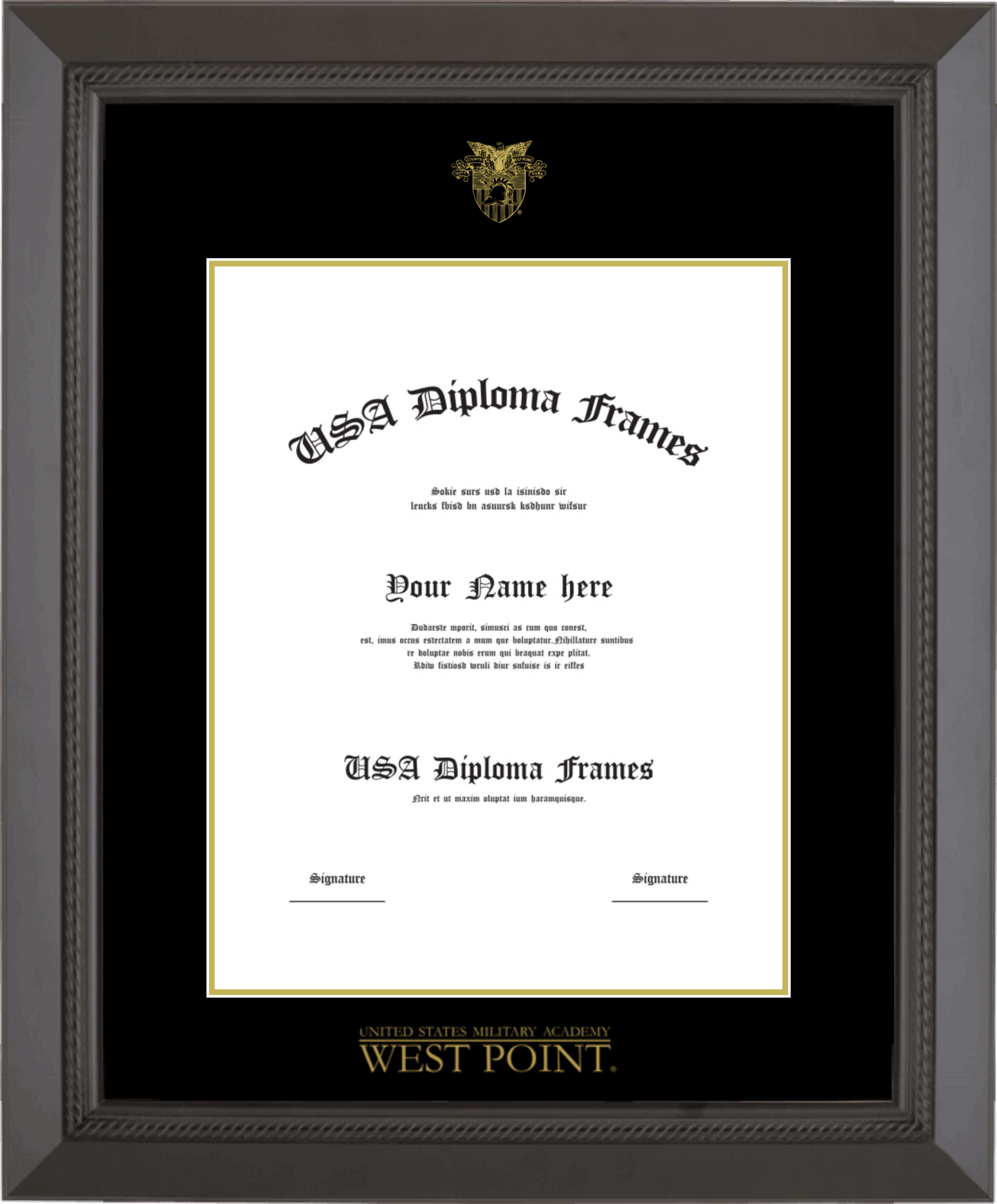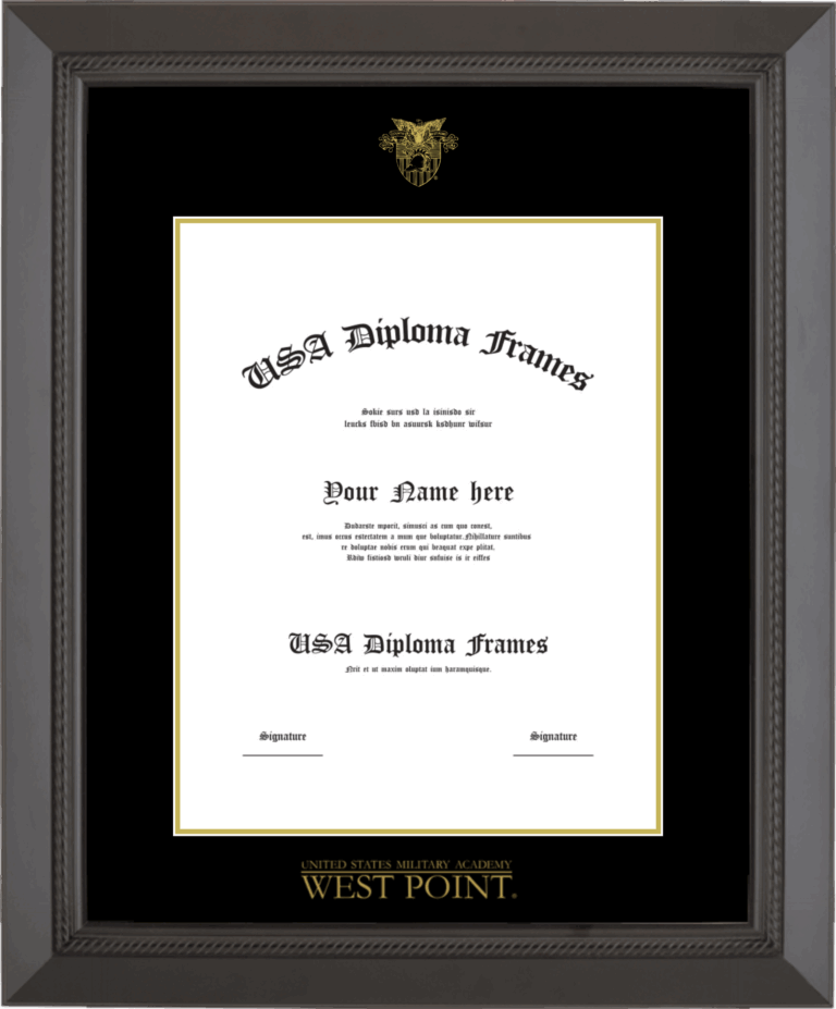 United States Military Academy Diploma Frame – Black Rope – Black and Gold Mat – 14×11