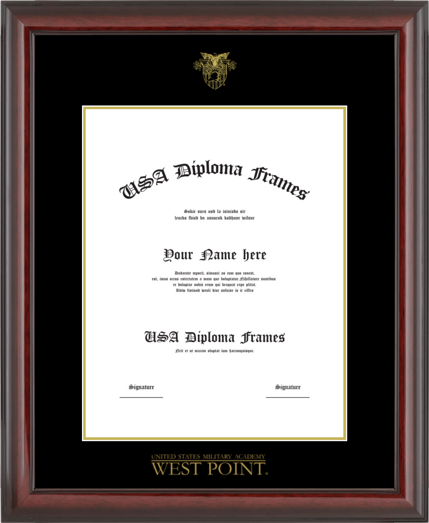 United States Military Academy Diploma Frame – Cherry Mahogany Glossy – Black and Gold Mat- 14×11