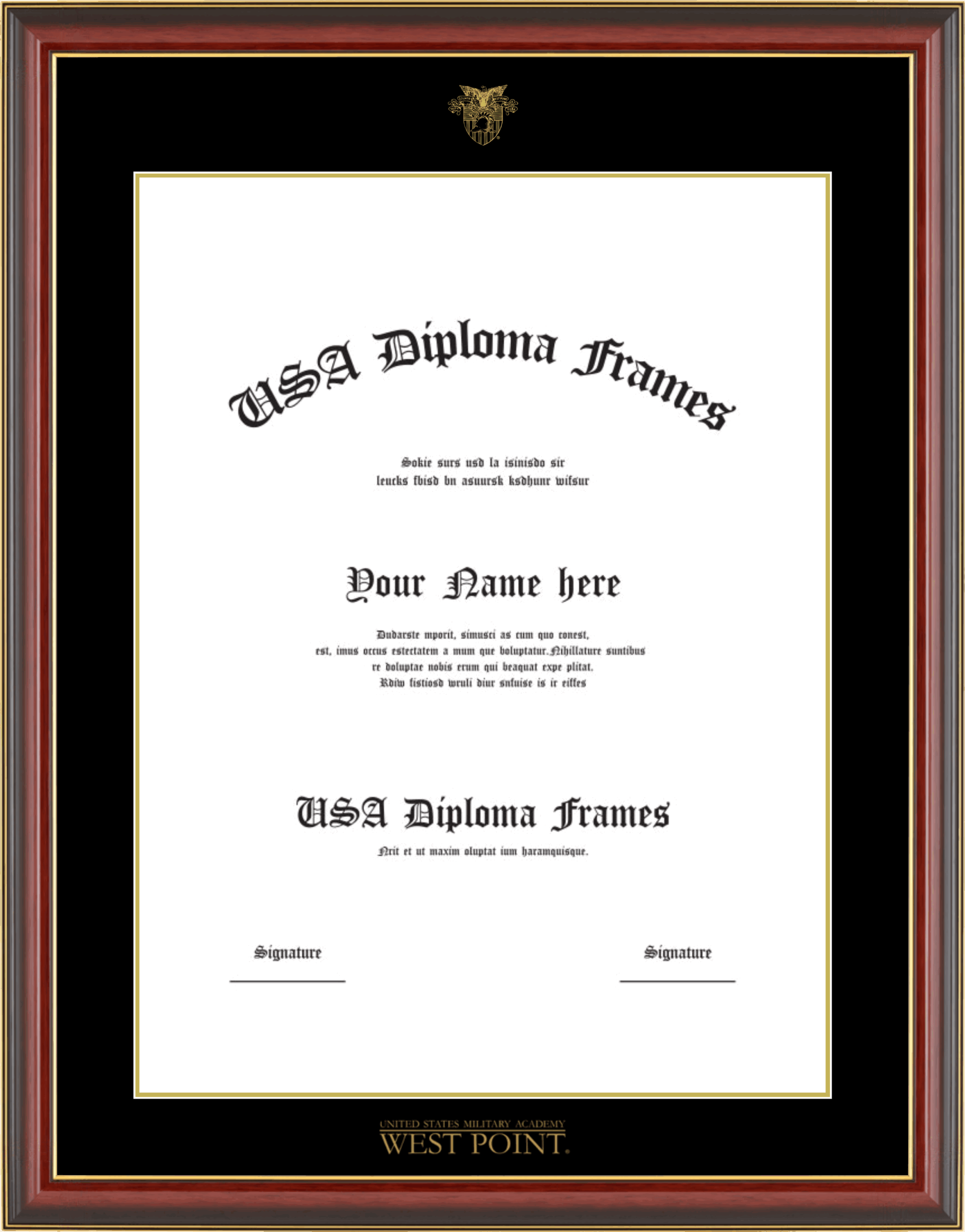United States Military Academy Diploma Frame – Cherry Mahogany Gold Trim Glossy – Black and Gold Mat – 24×18