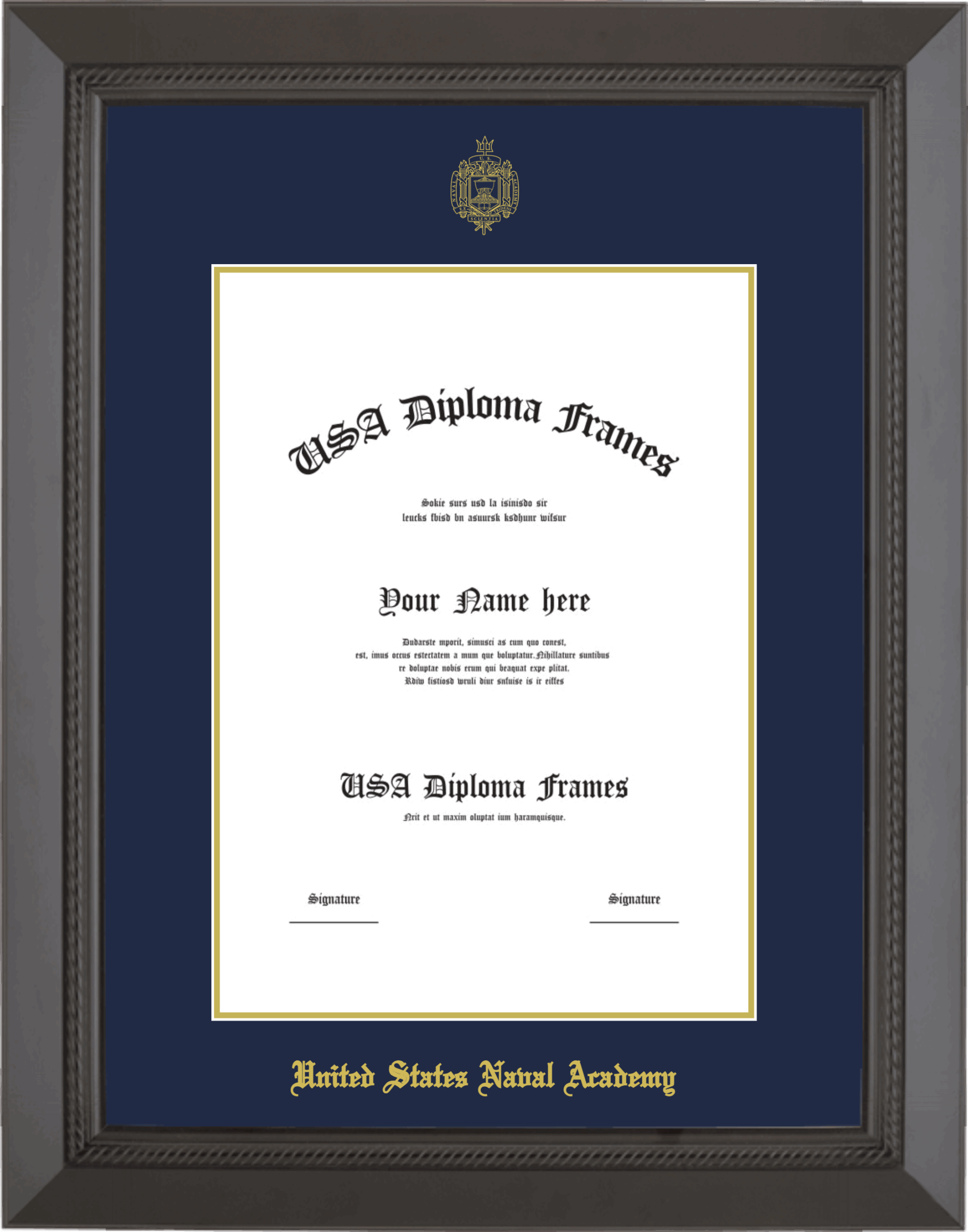 United States Naval Academy Diploma Frame – Black Rope – Navy and Gold Mat – 14×10