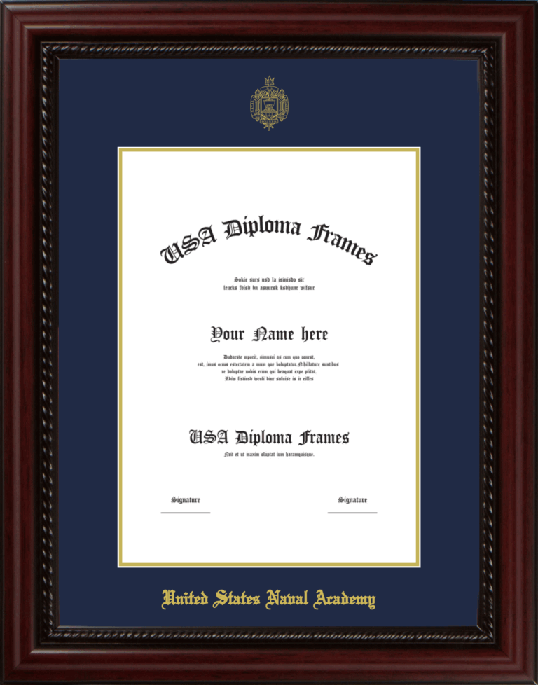 United States Naval Academy Diploma Frame – Executive Cherry Rope – Navy and Gold Mat – 14×10