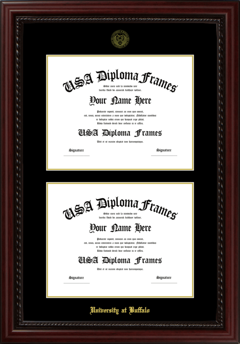 University at Buffalo, The State University of New York Double Diploma Frame – Double Document – Executive Cherry Rope – Black and Gold Mat