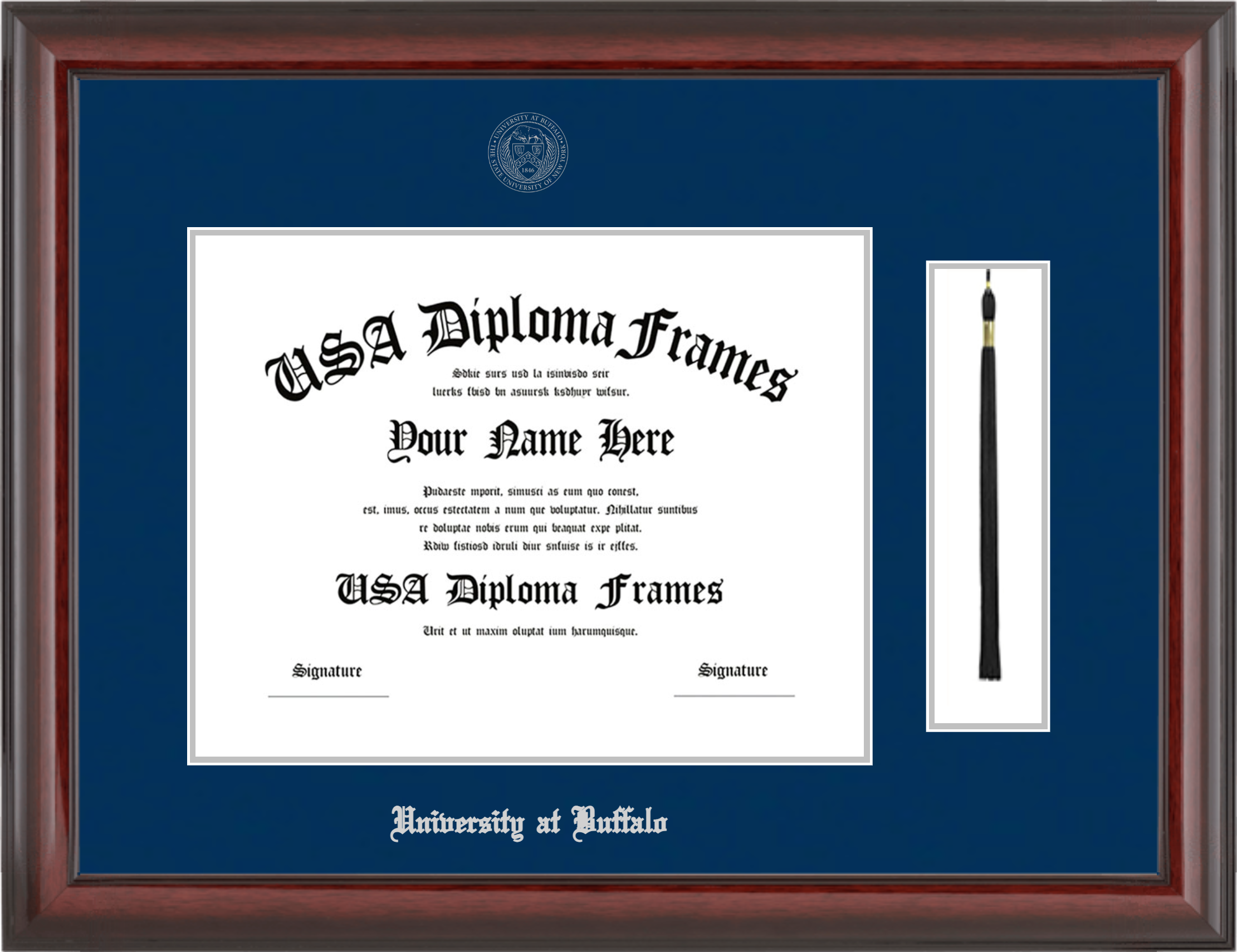 University at Buffalo Diploma Frame with Tassel – Cherry Mahogany Glossy – Navy and Silver Mat