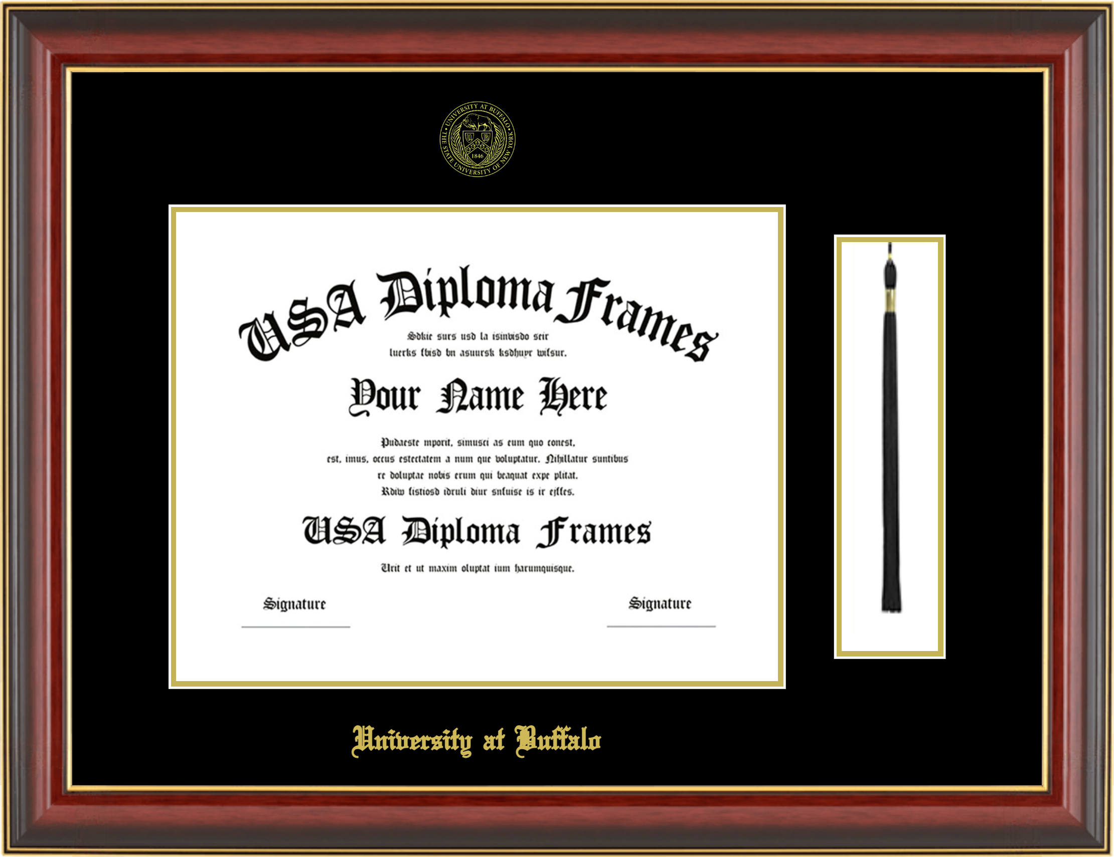 University at Buffalo Diploma Frame with Tassel – Cherry Mahogany Gold Trim Glossy – Black and Gold Mat