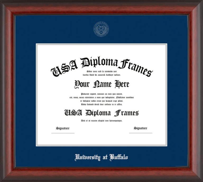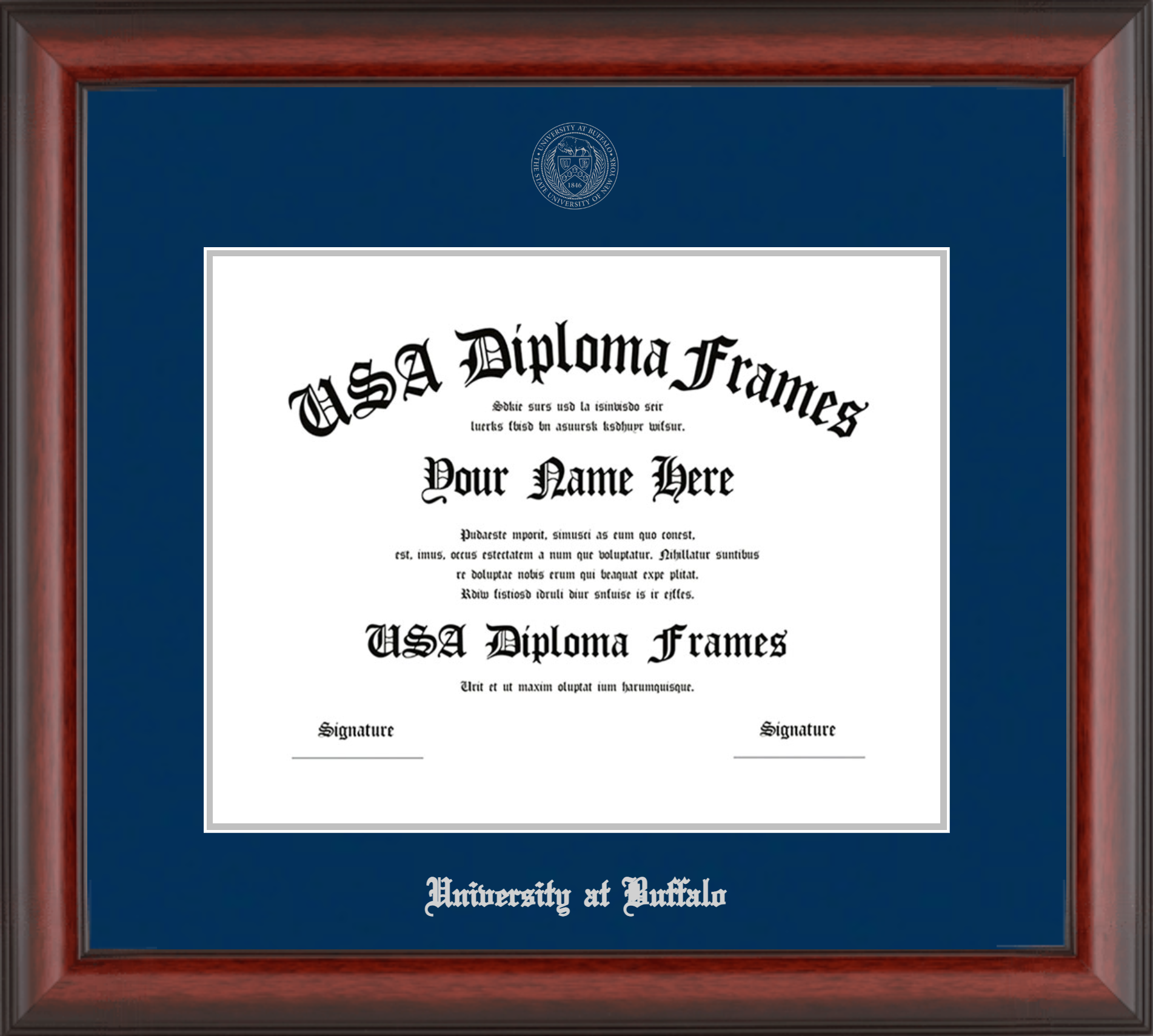 University at Buffalo Diploma Frame – Cherry Mahogany Matte – Navy and Silver Mat