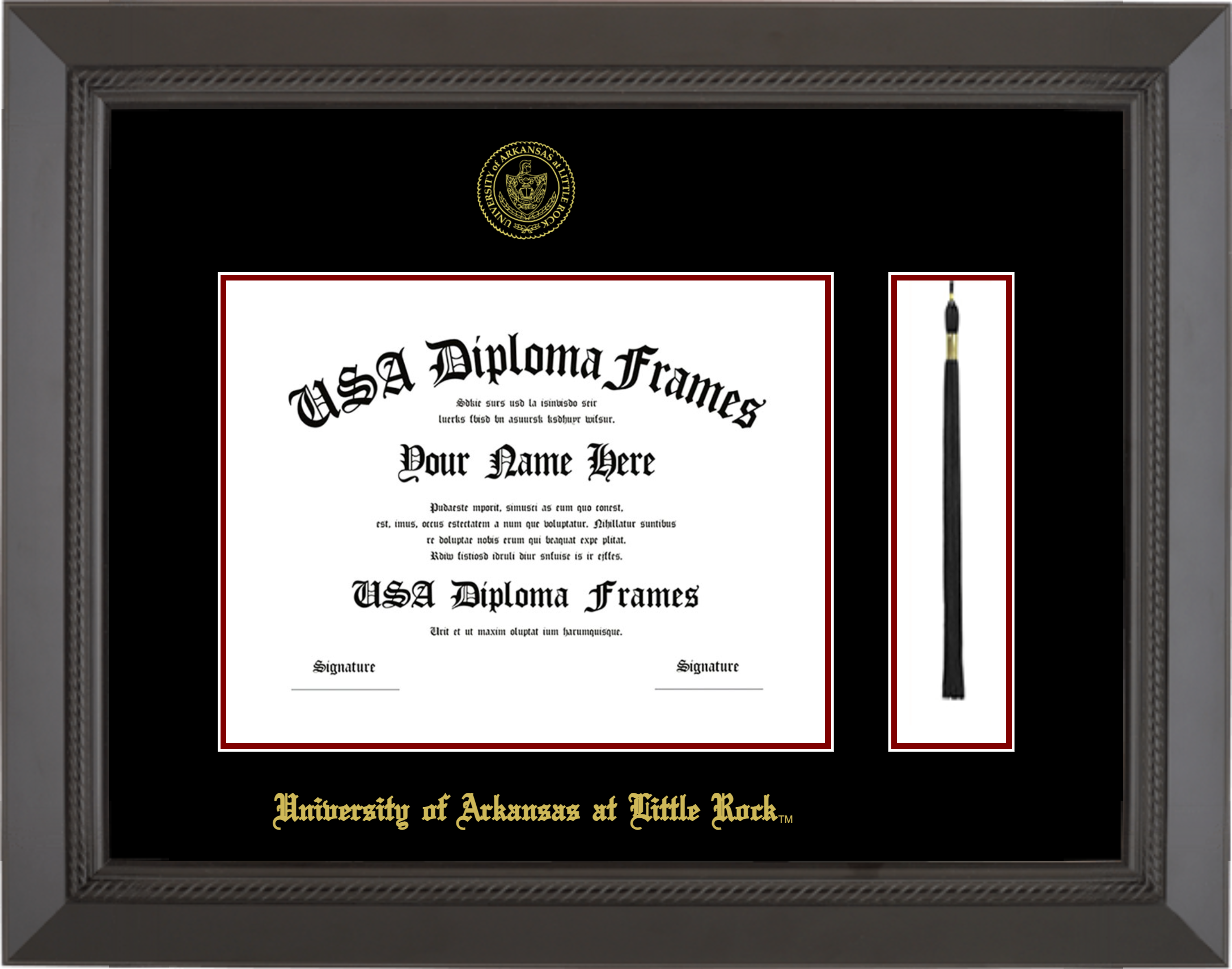 University of Arkansas at Little Rock – Single Horizontal Document ( Diploma ) – Black Rope – Black Mat – Maroon Accent Mat – With Tassel(Default) – With Seal(University Seal Gold) – With Gold Embossing (University of Arkansas at Little Rock)