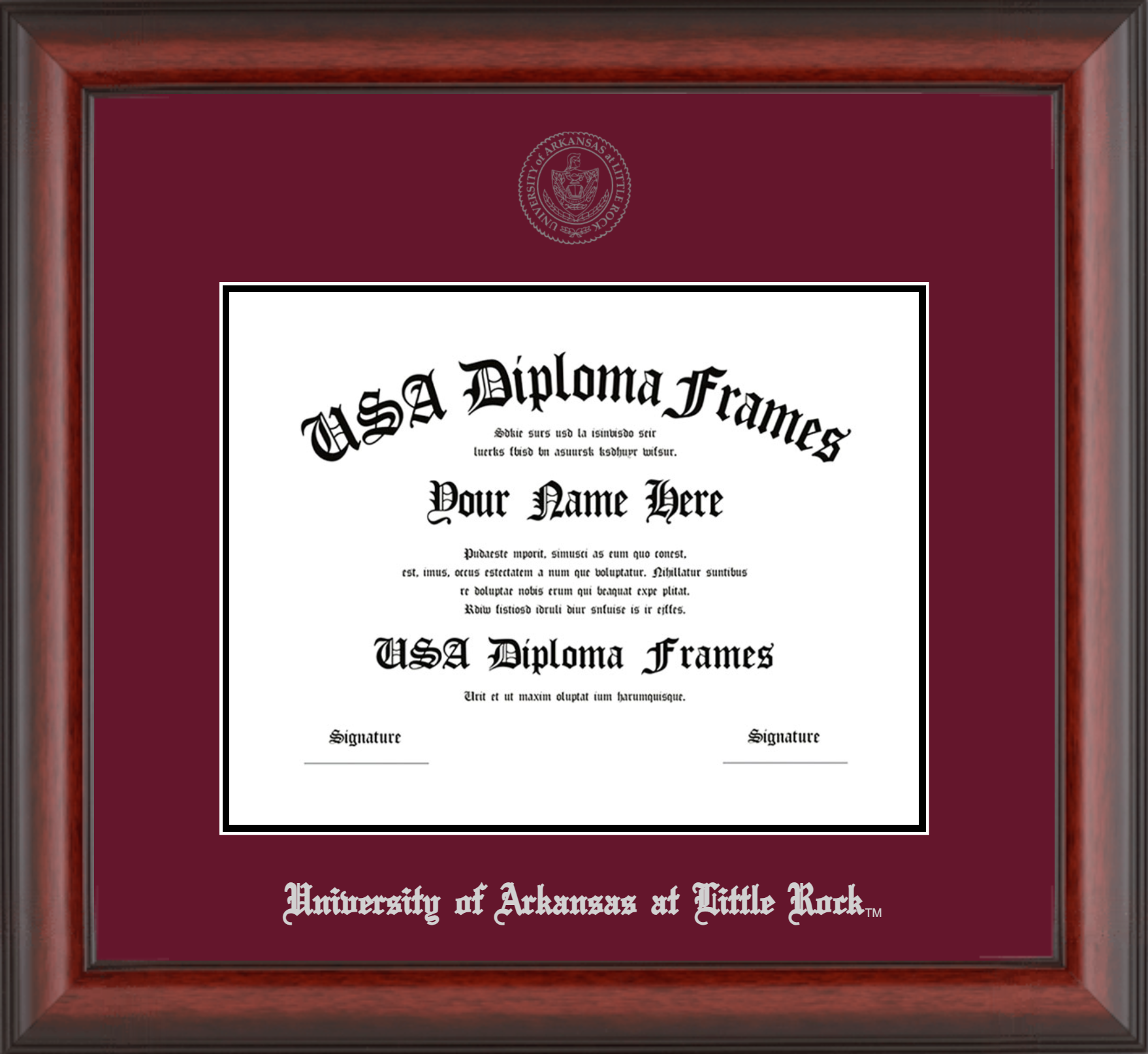University of Arkansas at Little Rock – Single Horizontal Document ( Diploma ) – Cherry Mahogany Matte – Maroon Mat – Black Accent Mat – With Seal(University Seal Silver) – With Silver Embossing (University of Arkansas at Little Rock)