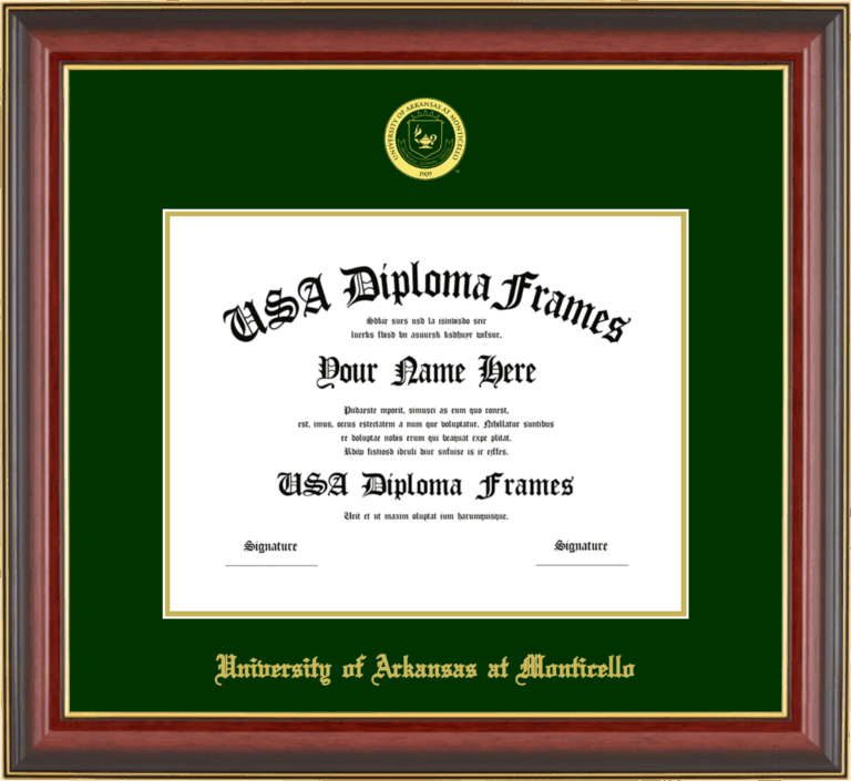 Want to explore more styles? Browse our full range of diploma frame layouts, or visit the University of Arkansas at Monticello to view options available for your school. Looking for a fully personalized design? Try our custom Frame Builder and create a frame that’s uniquely yours.