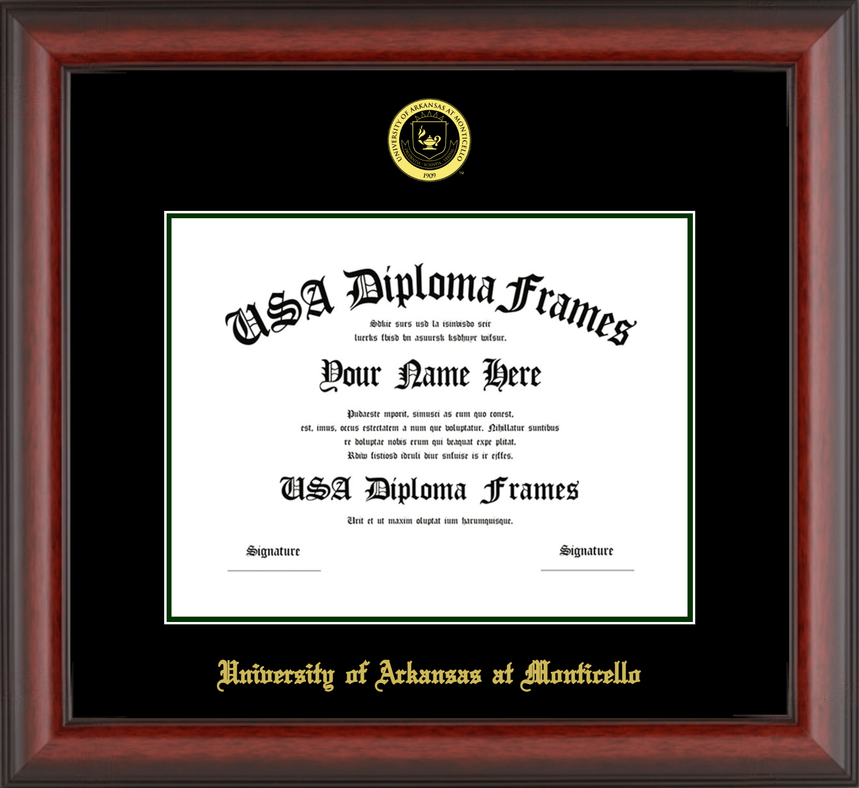 University of Arkansas at Monticello Diploma Frame – Cherry Mahogany Matte – Black and Winter Green Mat