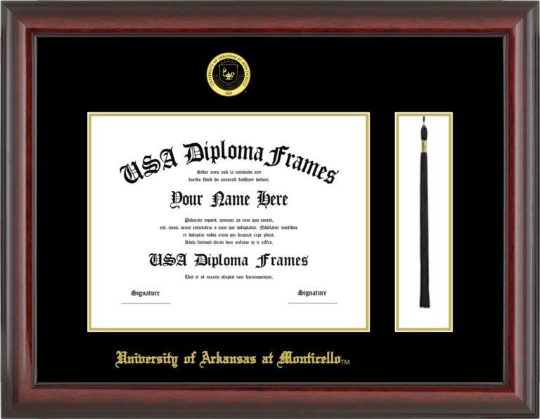 University of Arkansas at Monticello Diploma Frame with Tassel – Cherry Mahogany Glossy – Black and Gold Mat