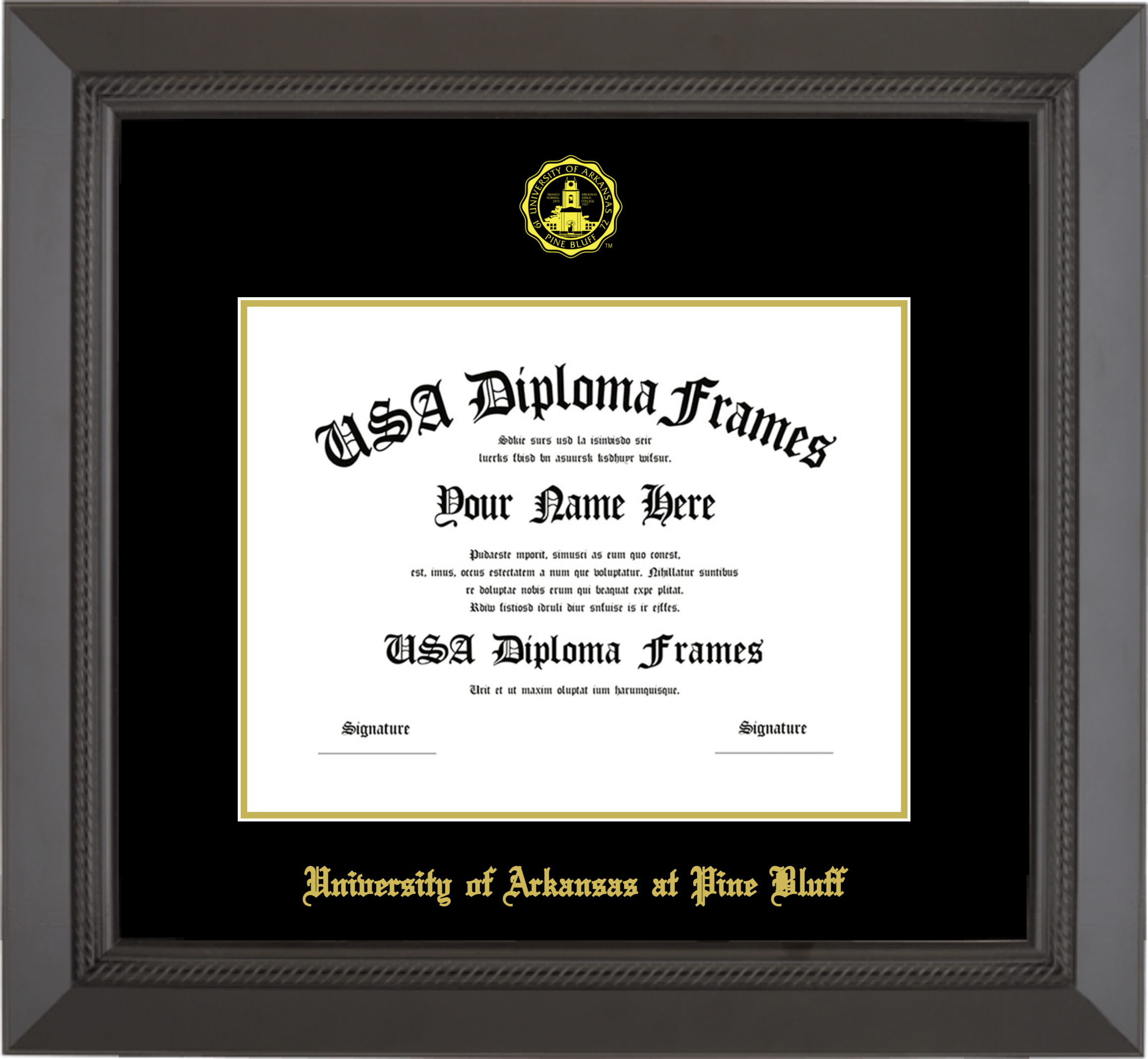 University of Arkansas at Pine Bluff Diploma Frame – Black Rope – Black and Gold Mat