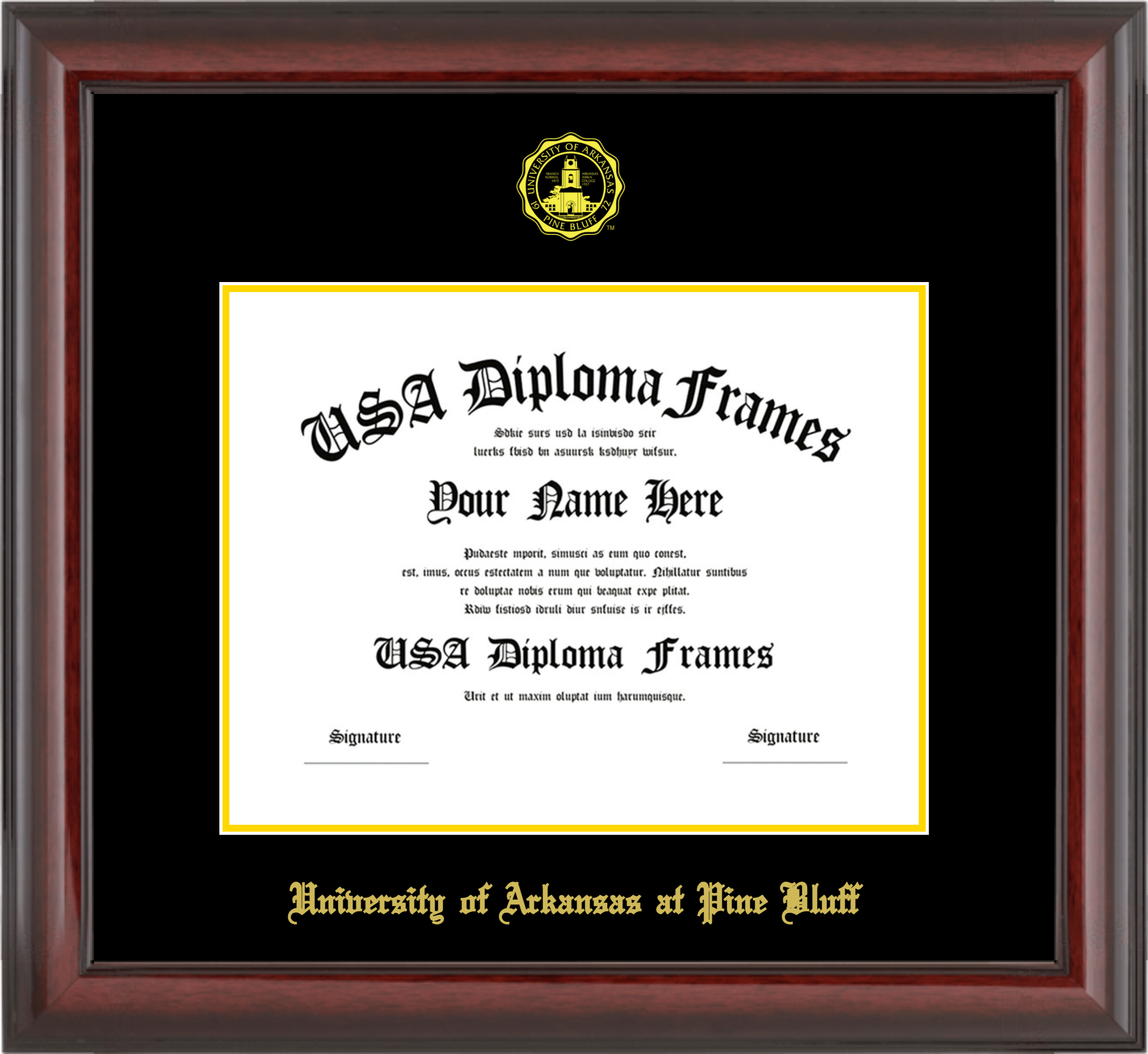 University of Arkansas at Pine Bluff Diploma Frame – Cherry Mahogany Glossy – Black and Yellow Gold Mat