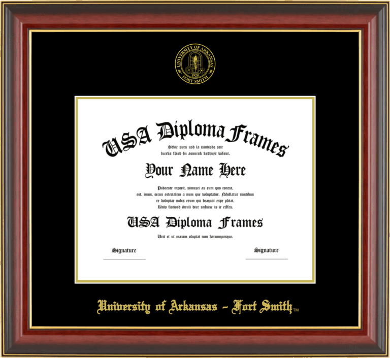 Want to explore more styles? Browse our full range of diploma frame layouts, or visit the University of Arkansas - Fort Smith to view options available for your school. Looking for a fully personalized design? Try our custom Frame Builder and create a frame that’s uniquely yours.
