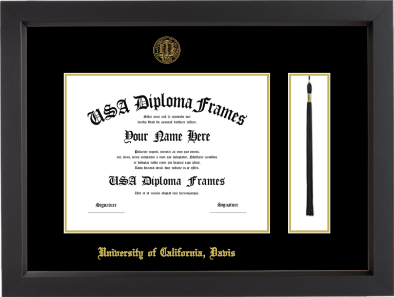 University of California, Davis Diploma Frame with Tassel – Black Matte – Black and Gold Mat