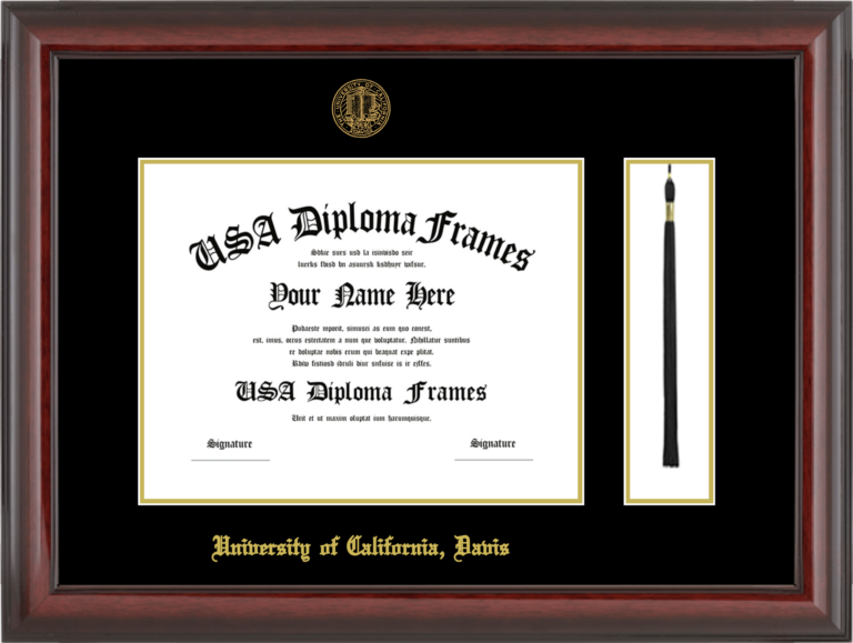 University of California, Davis Diploma Frame with Tassel – Cherry Mahogany Glossy – Black and Gold Mat
