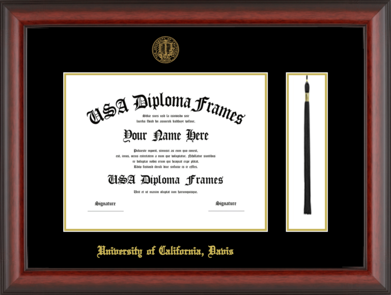 University of California, Davis Diploma Frame with Tassel – Cherry Mahogany Matte – Black and Gold Mat
