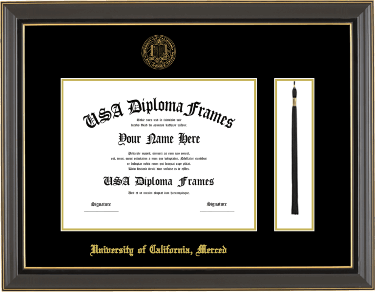 University of California, Merced Diploma Frame with Tassel – Black Gold Trim Glossy – Black and Gold Mat