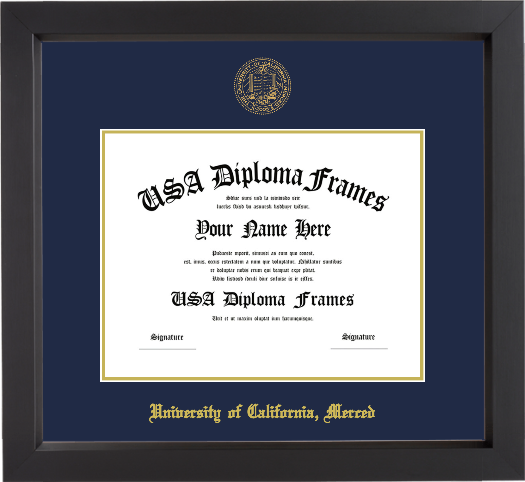 University of California, Merced – Single Horizontal Document ( Bachelors ) – Black Matte – Navy Mat – Gold Accent Mat – With Seal(University Seal Gold) – With Gold Embossing (University of California, Merced)