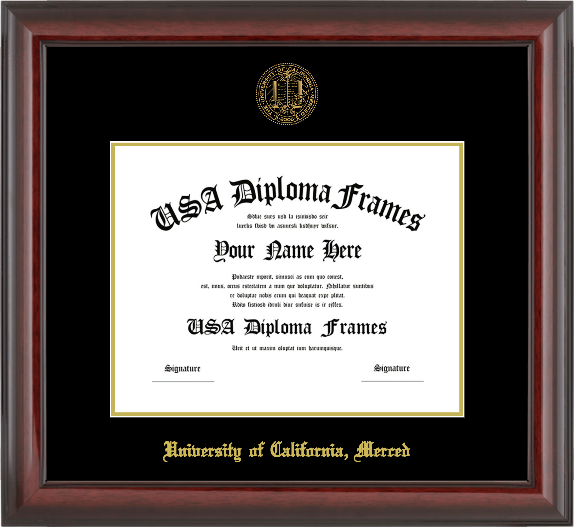 University of California, Merced Diploma Frame – Cherry Mahogany Glossy – Black and Gold Mat