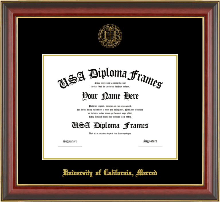 University of California, Merced Diploma Frame – Cherry Mahogany Gold Trim Glossy – Black and Gold Mat