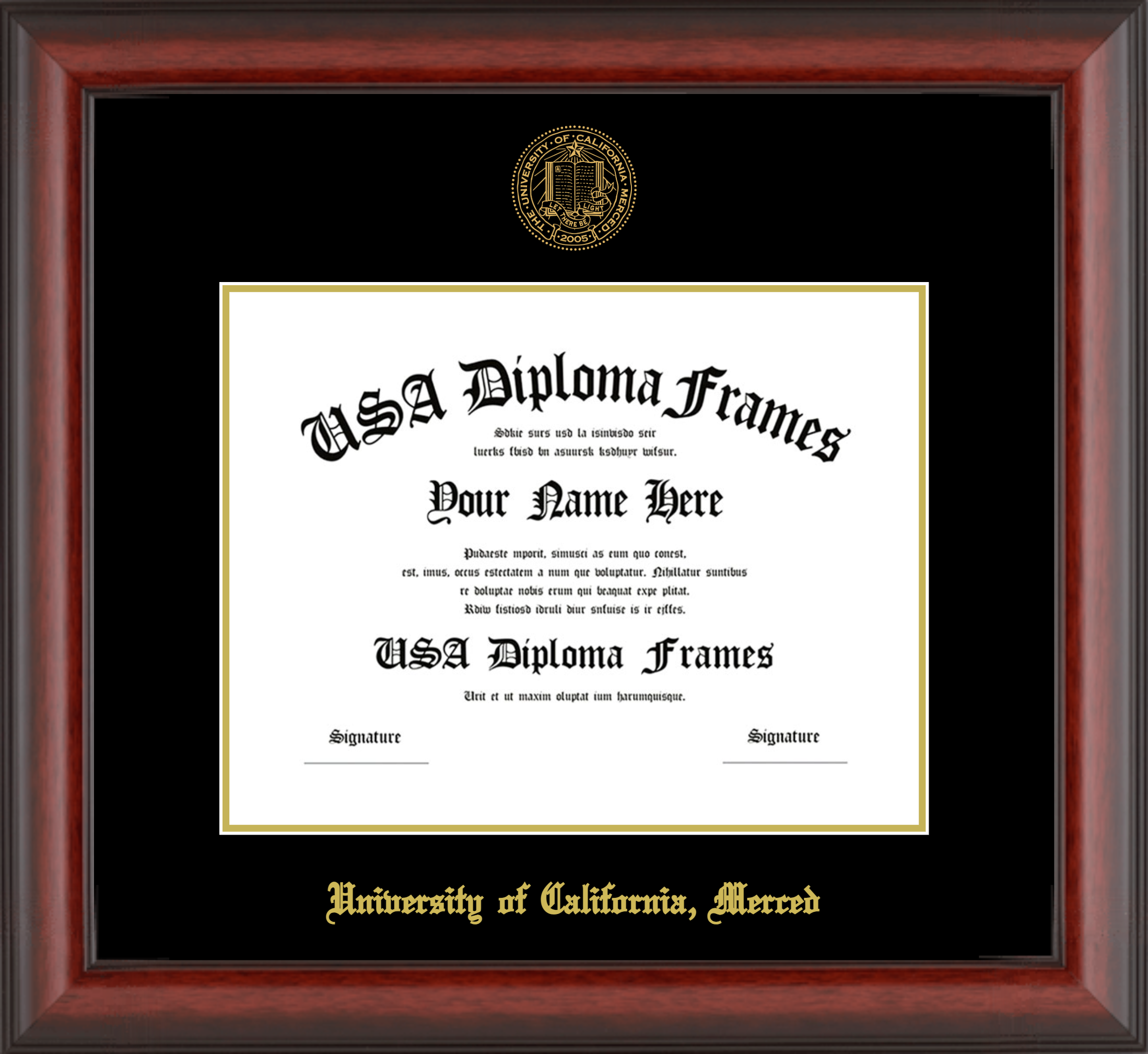 University of California, Merced Diploma Frame – Cherry Mahogany Matte – Black and Gold Mat