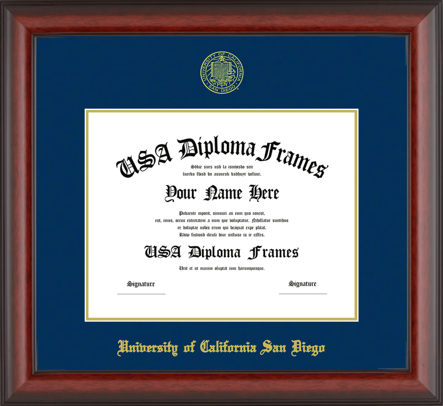 University of California San Diego Diploma Frame – Cherry Mahogany Matte – Navy and Gold Mat