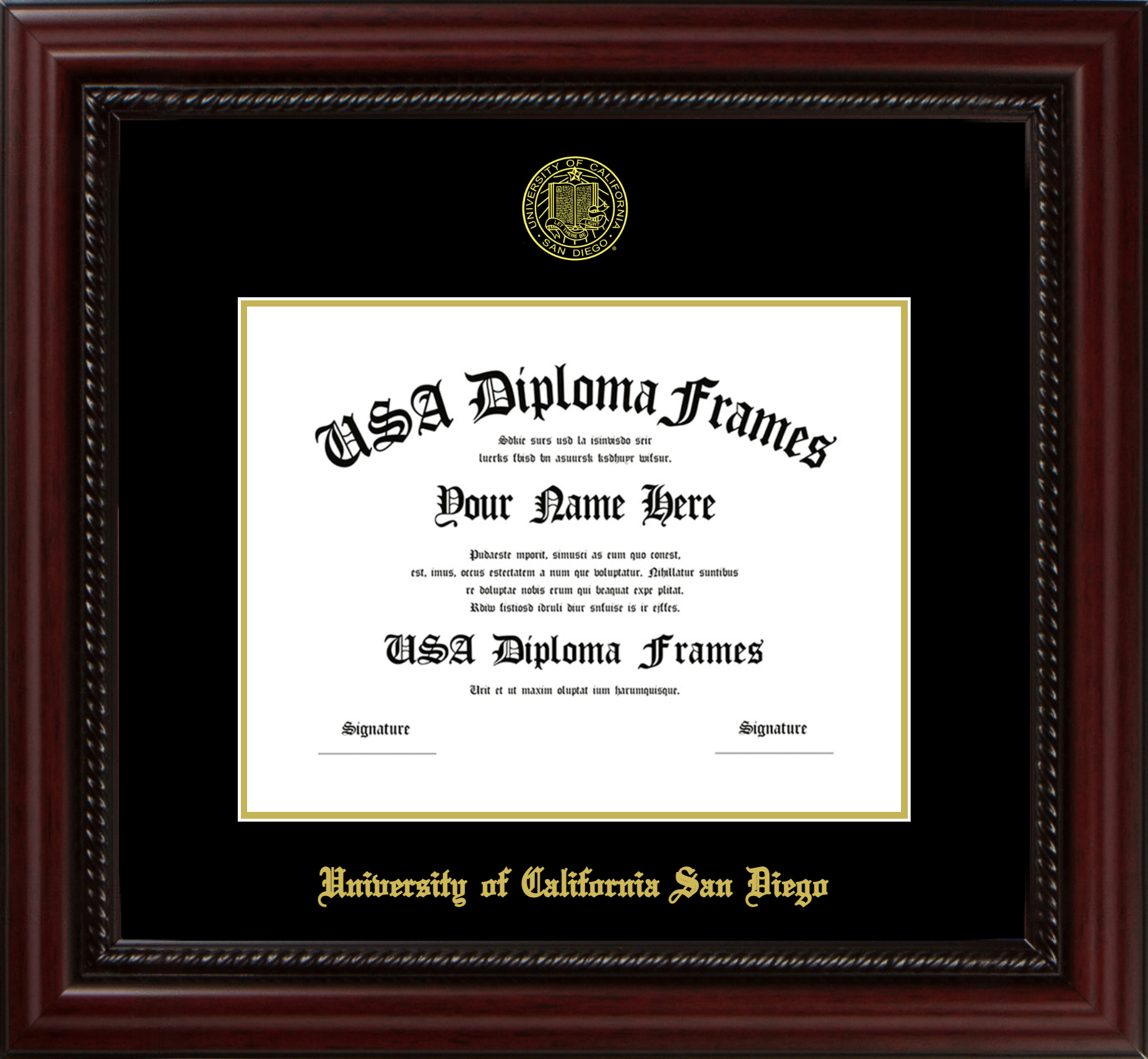University of California San Diego Diploma Frame – Executive Cherry Rope – Black and Gold Mat