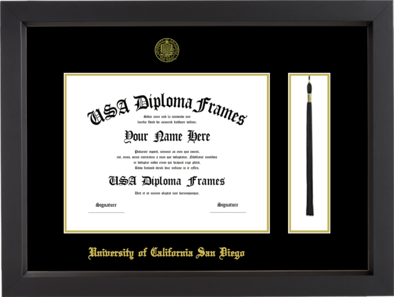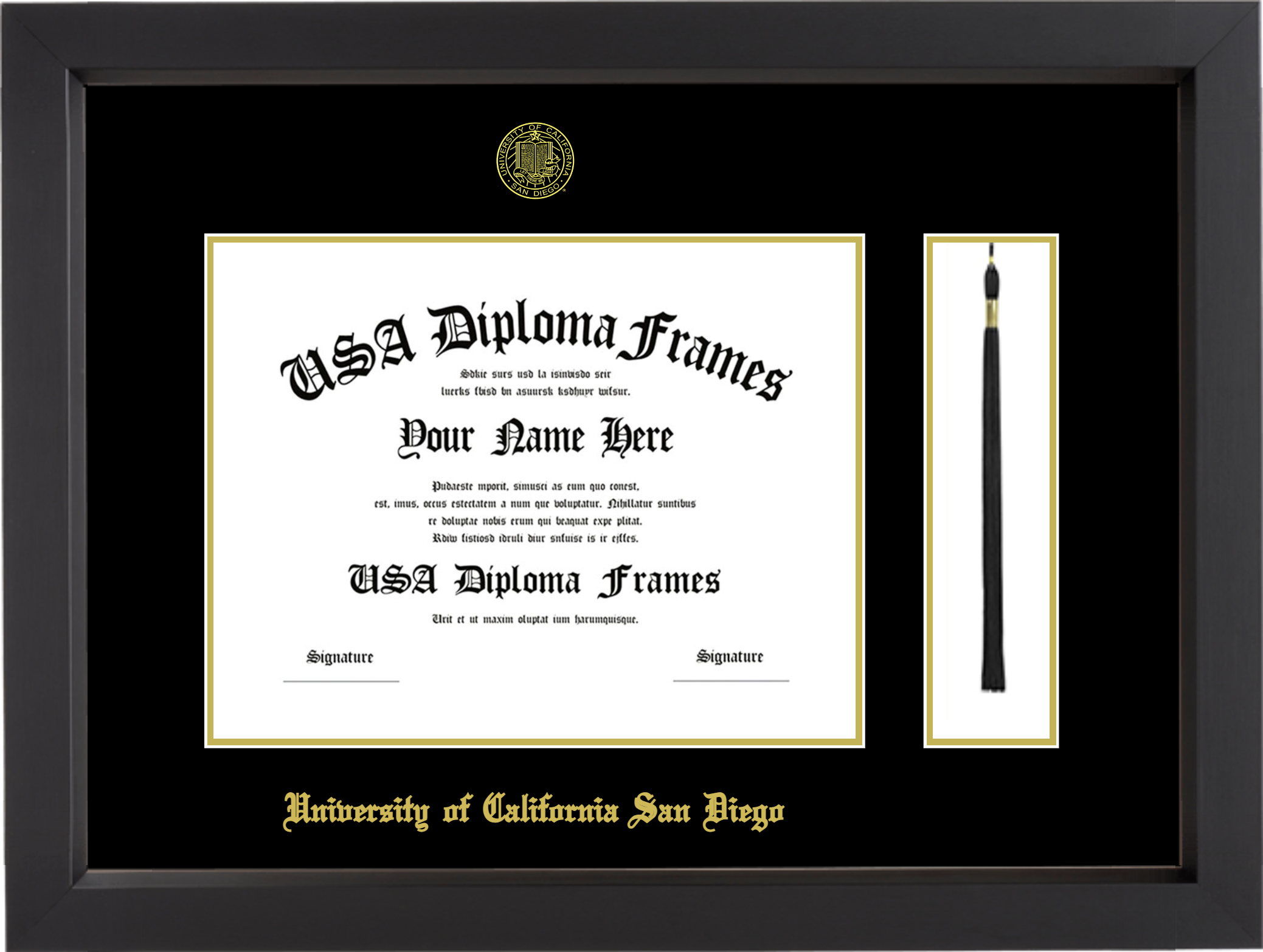 University of California San Diego Diploma Frame with Tassel – UCSD – Black Matte – Black and Gold Mat