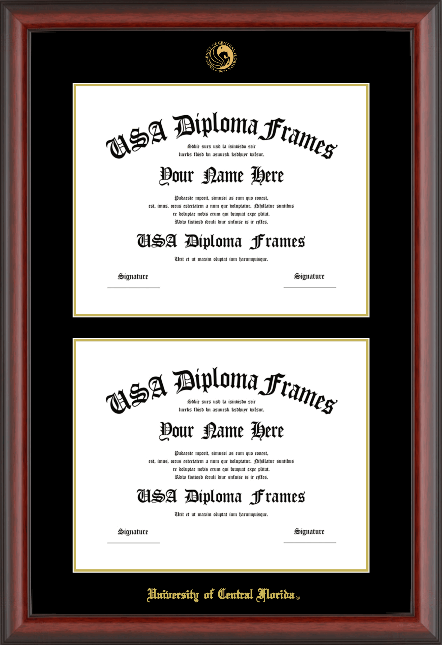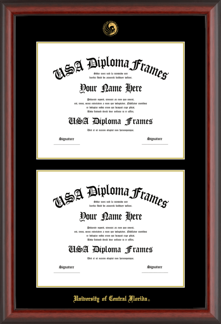 University of Central Florida Double Diploma Frame – Double Document Frame for 11″x14″ Master’s and PhD/Doctoral Degrees – Cherry Mahogany Matte – Black and Gold Mat