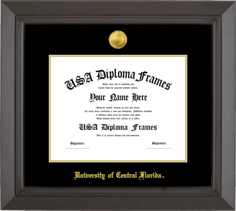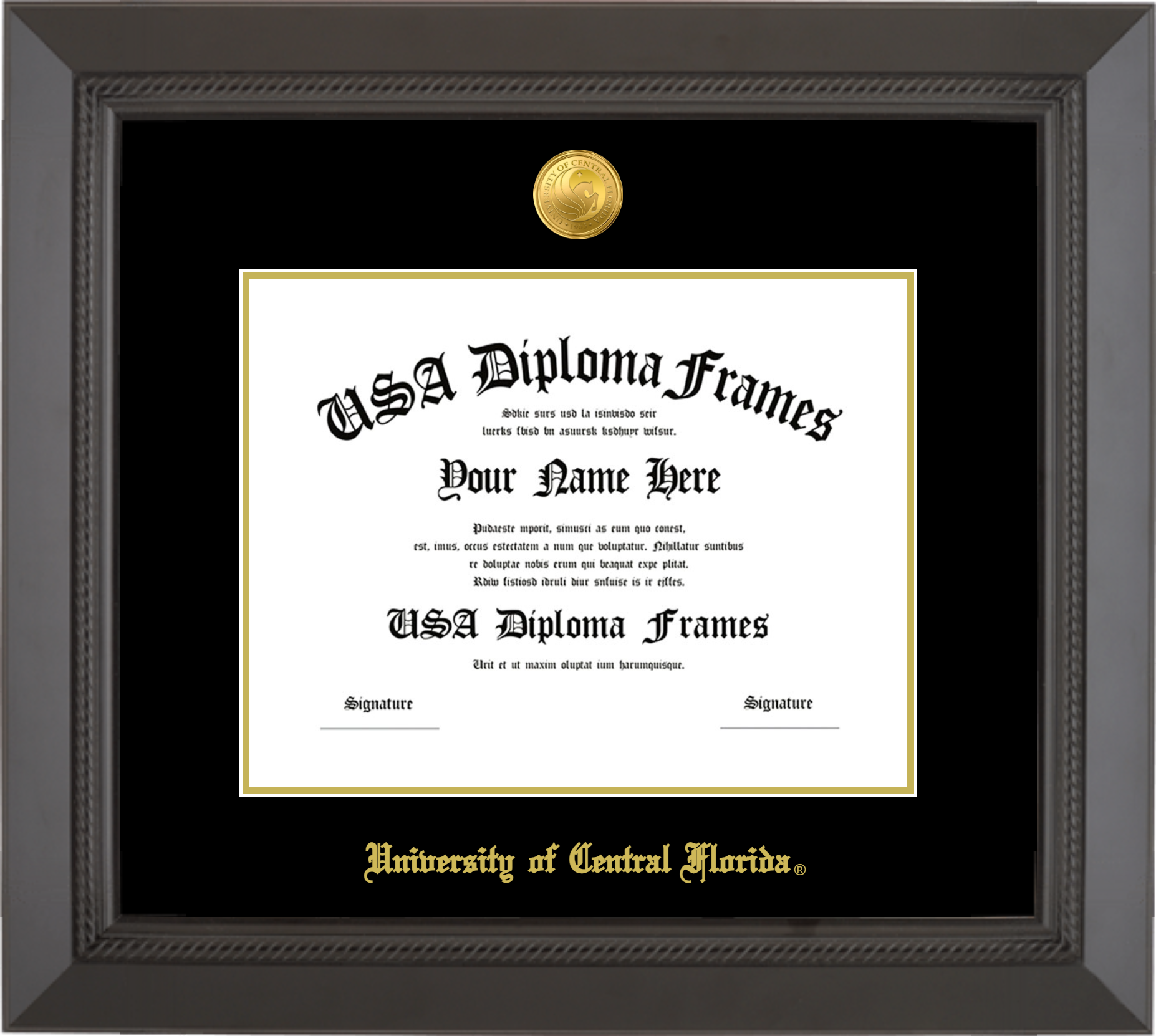 University of Central Florida Diploma Frame – For 8.5″x11″ Bachelor’s Degrees – Black Rope – Black Gold Mat with Medallion Seal