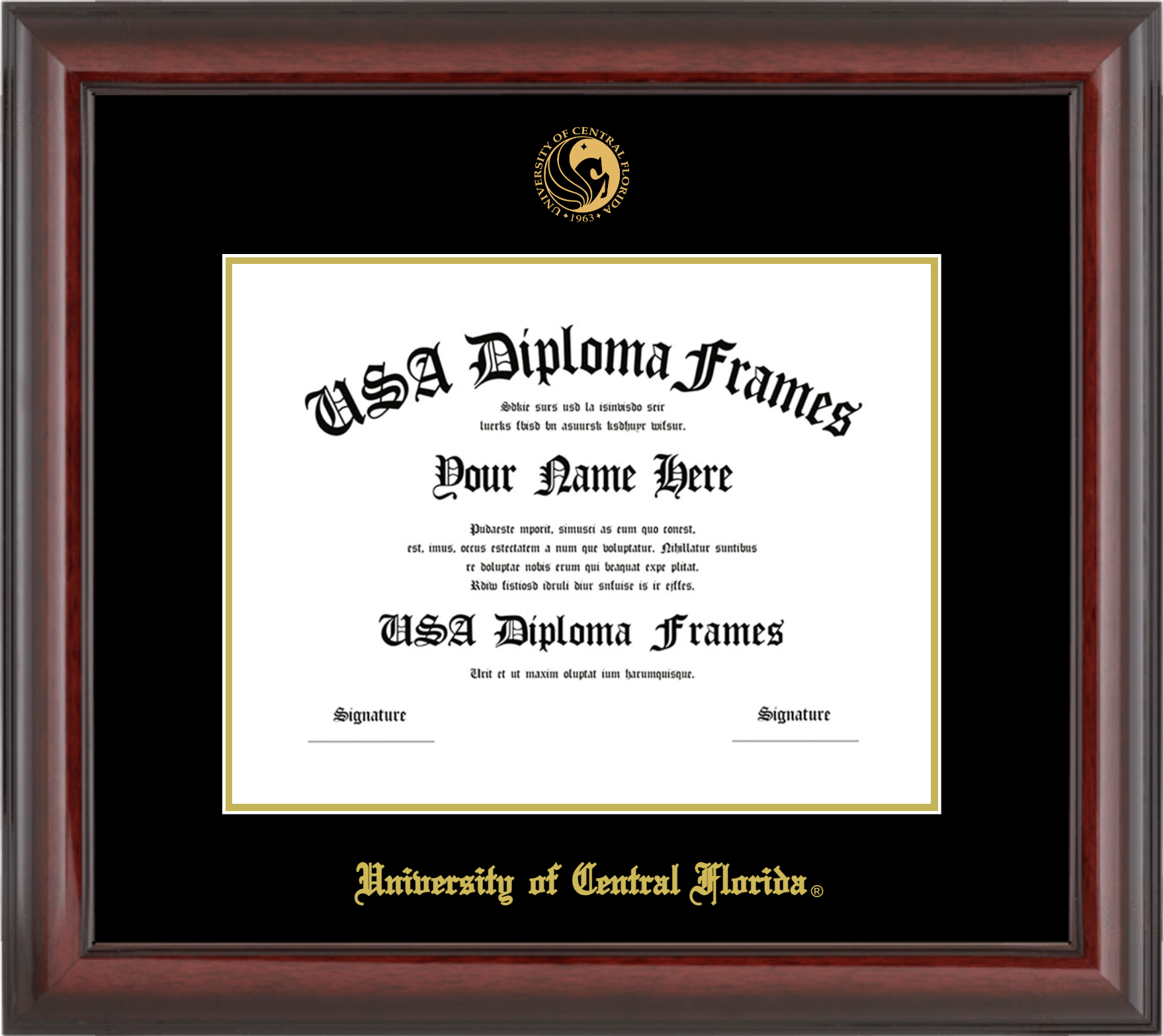 University of Central Florida Diploma Frame – UCF Bachelors – Cherry Mahogany Glossy – Black and Gold Mat
