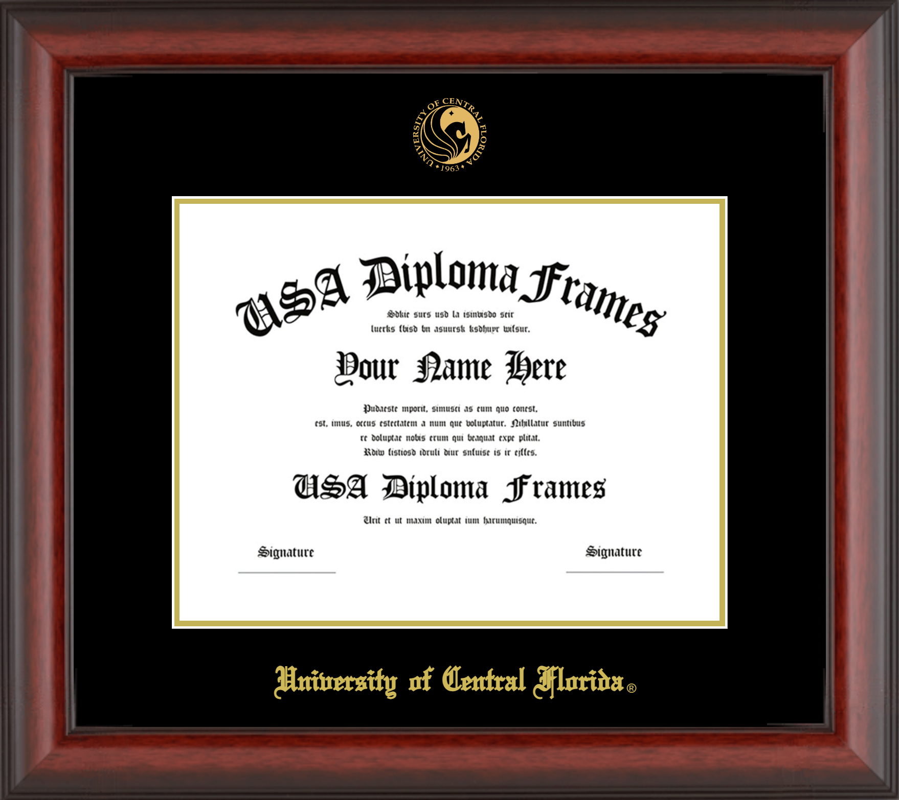 University of Central Florida Diploma Frame – For 8.5″x11″ Bachelor’s Degrees – Chery Mahogany Matte – Black Gold Mat with Seal