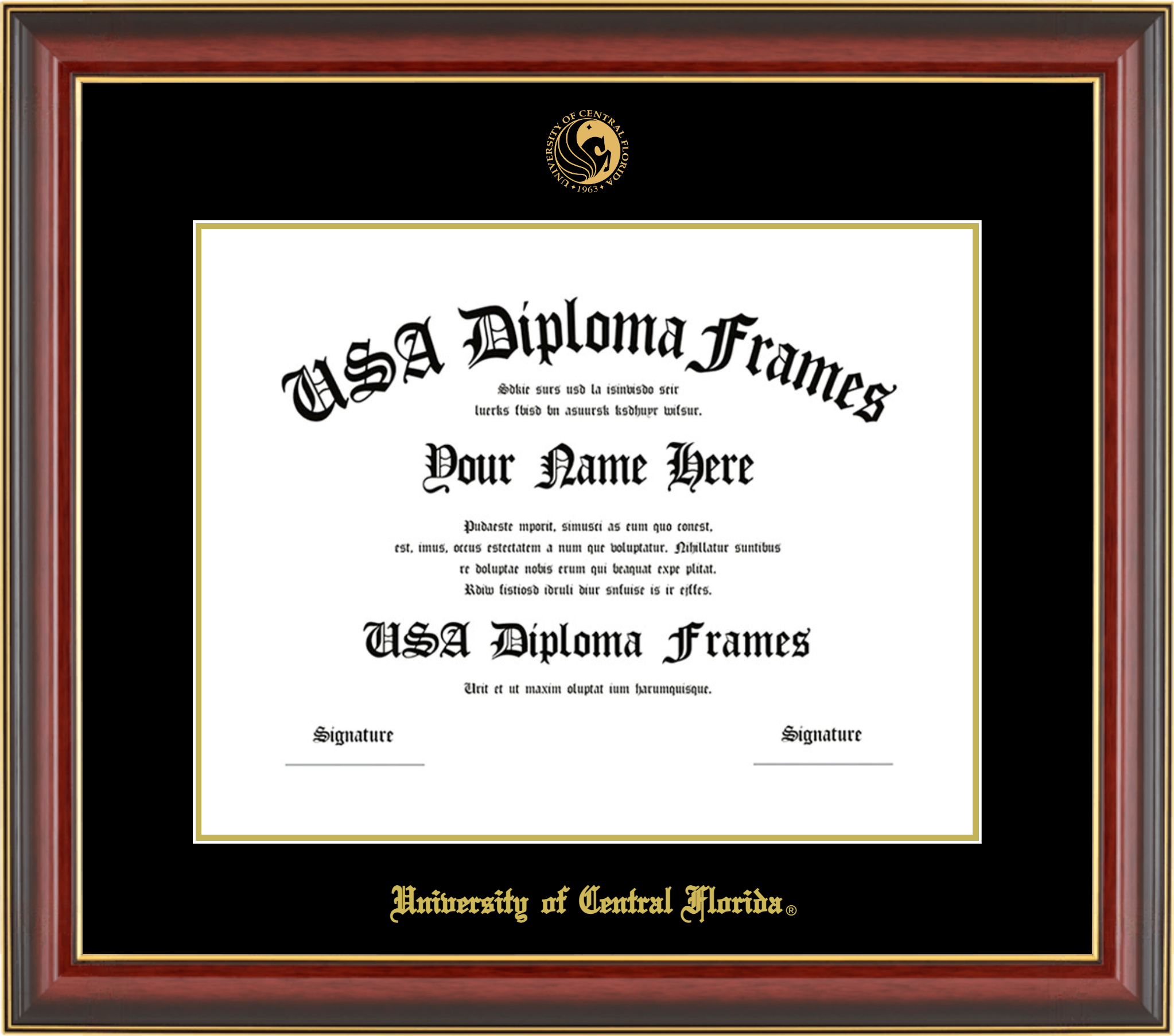 University of Central Florida Diploma Frame – Masters/PhD 11×14 – Cherry Mahogany Gold Trim Glossy – Black and Gold Mat