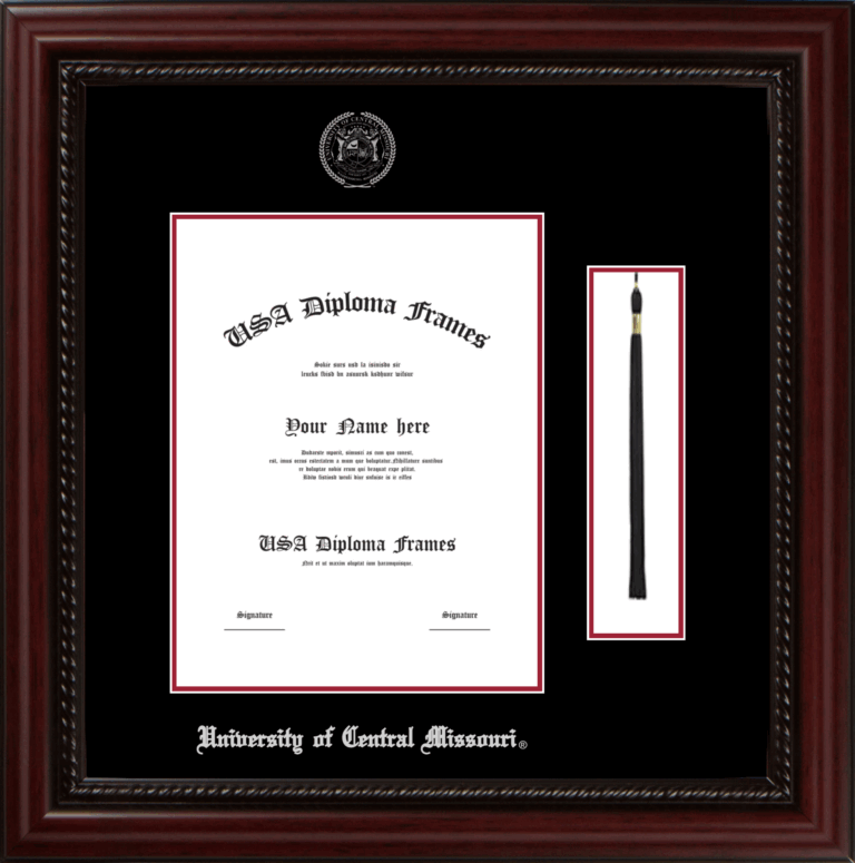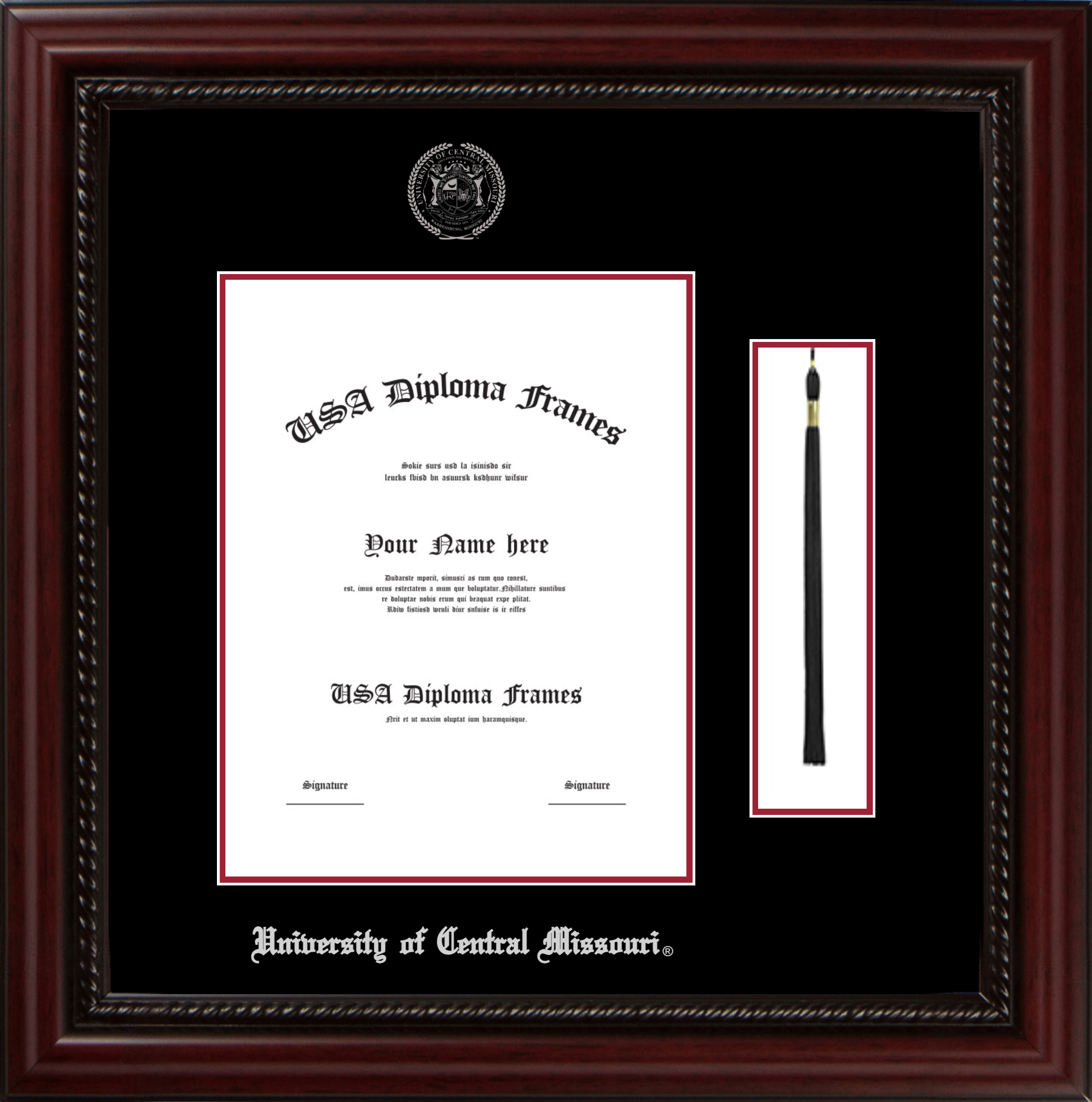 University of Central Missouri Diploma Frame with Tassel – Executive Cherry Rope – Black and Crimson Mat