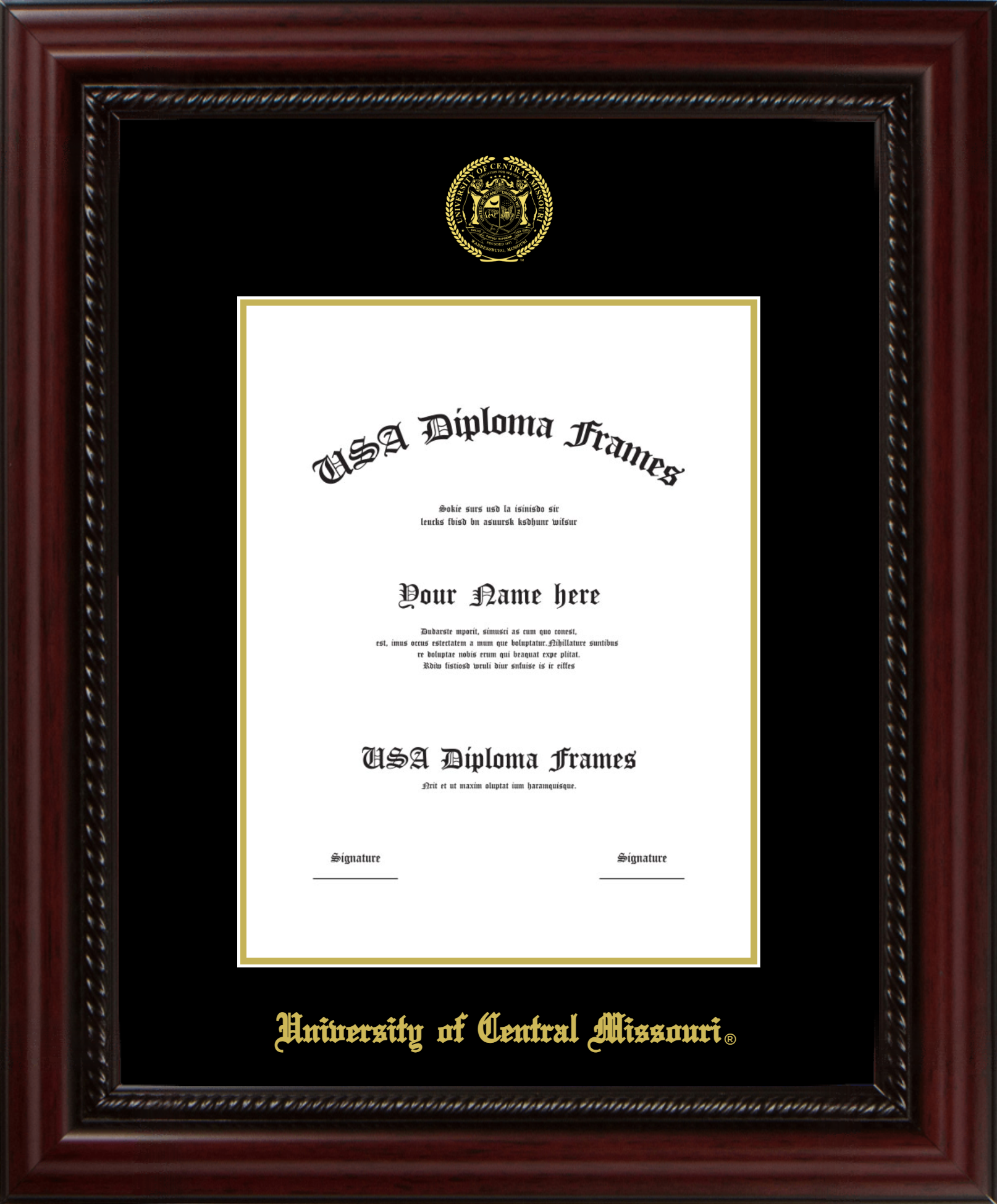 University of Central Missouri Diploma Frame – Executive Cherry Rope – Black and Gold Mat