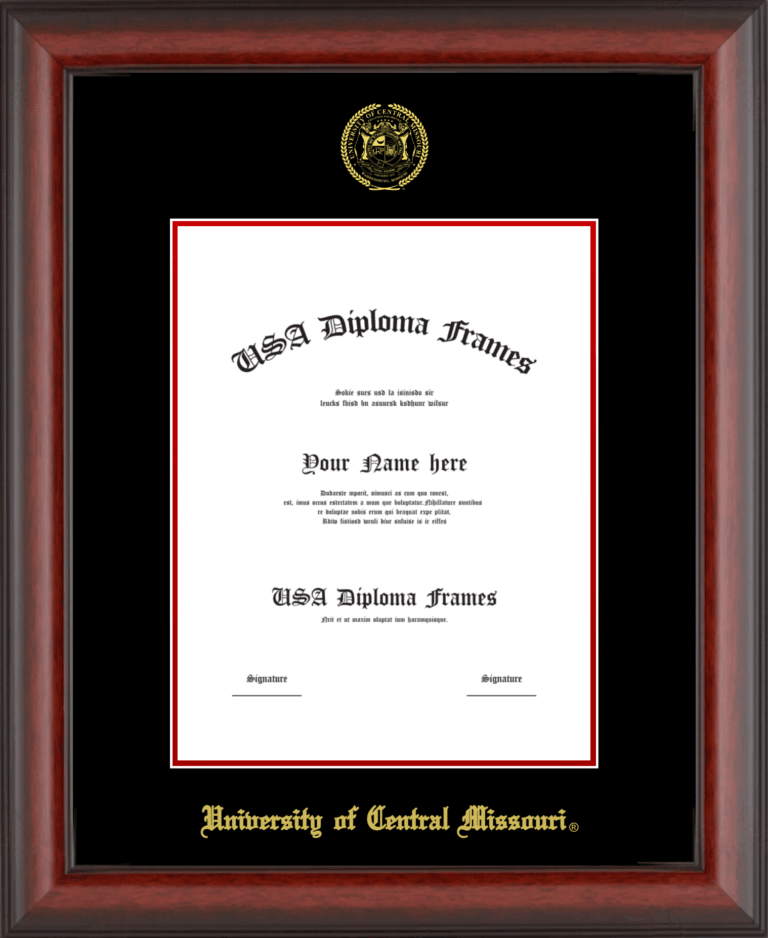 University of Central Missouri Diploma Frame – Cherry Mahogany Matte – Black and Red Mat