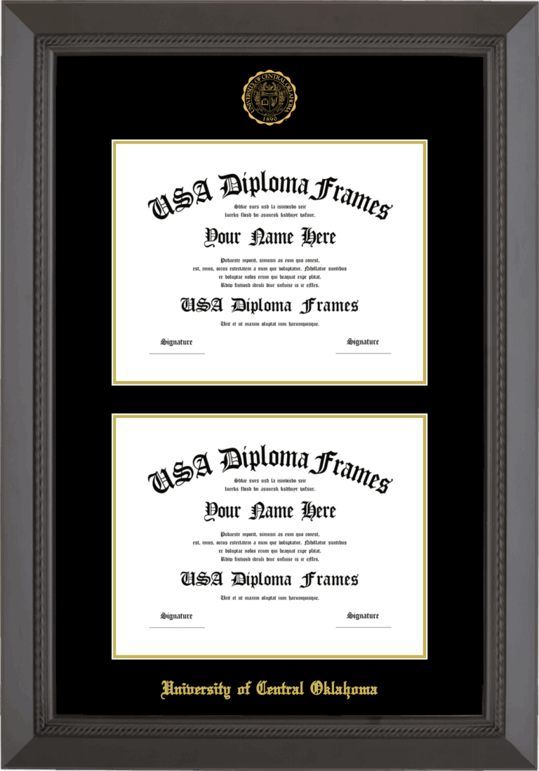 University of Central Oklahoma Double Diploma Frame – Double Document – Black Rope – Black and Gold Mat
