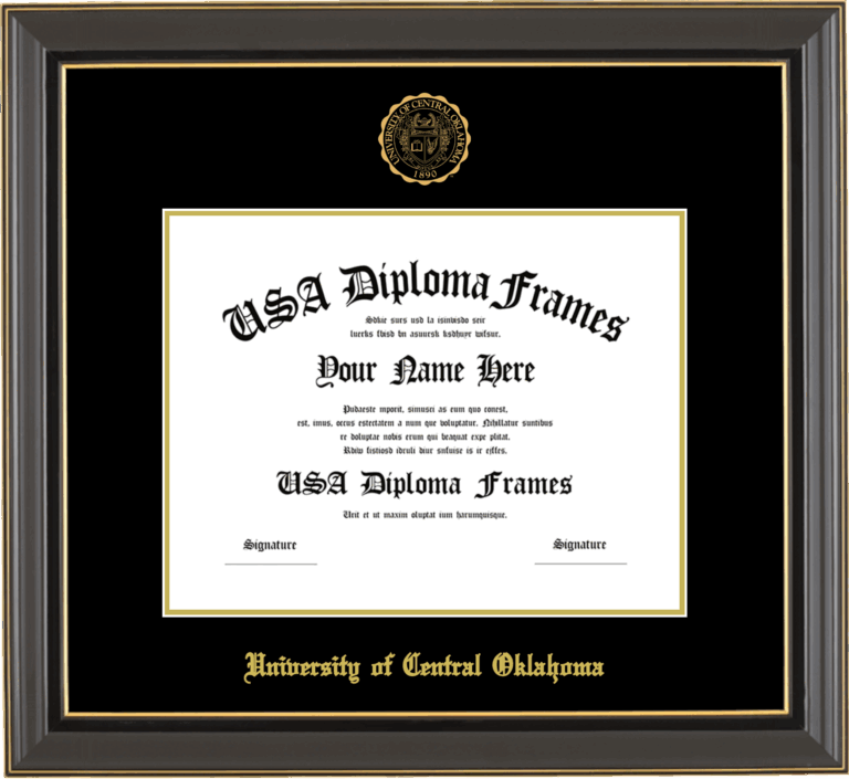 University of Central Oklahoma Diploma Frame – Black Gold Trim Glossy – Black and Gold Mat