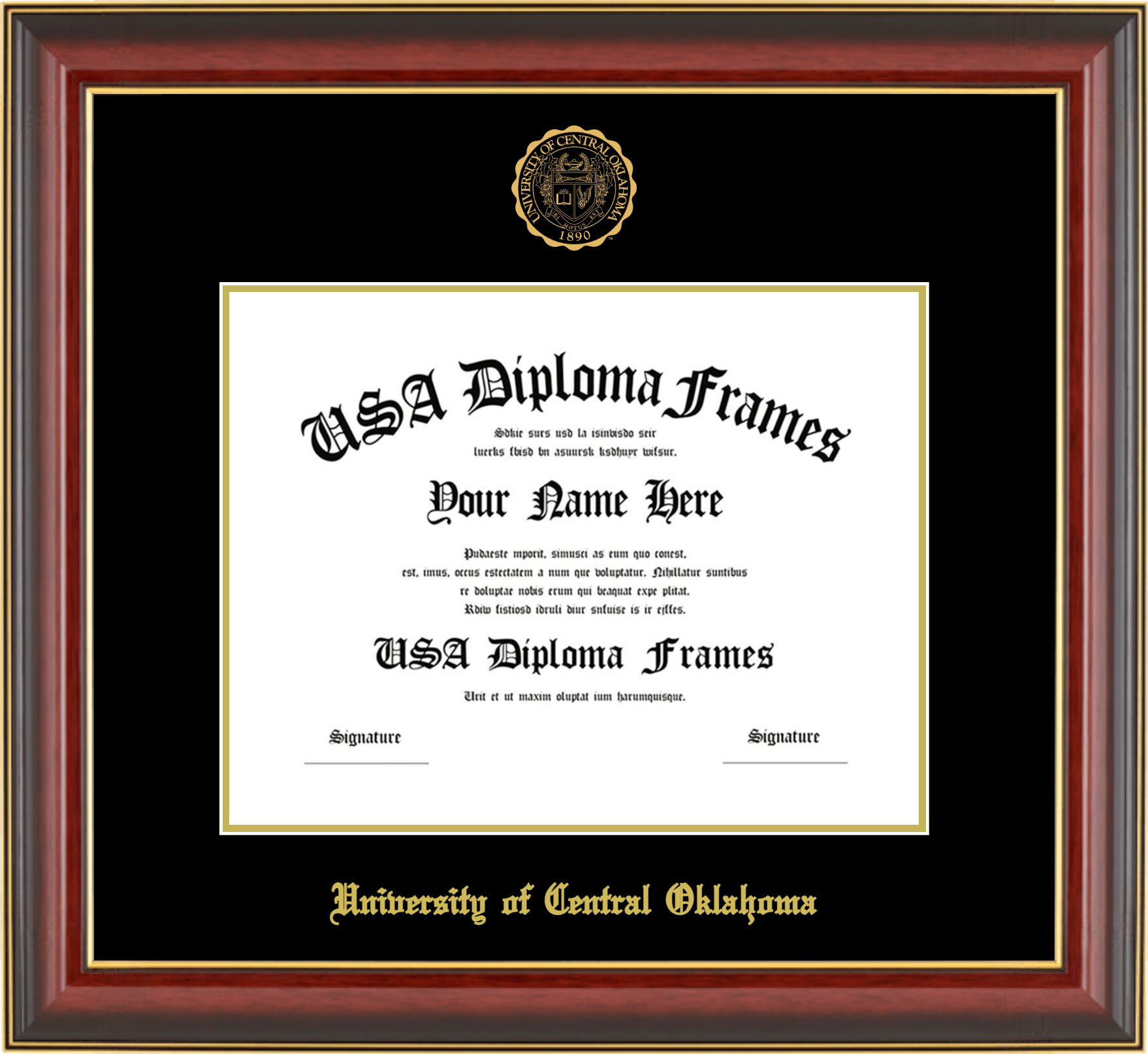 University of Central Oklahoma Diploma Frame – Cherry Mahogany Gold Trim Glossy – Black and Gold Mat