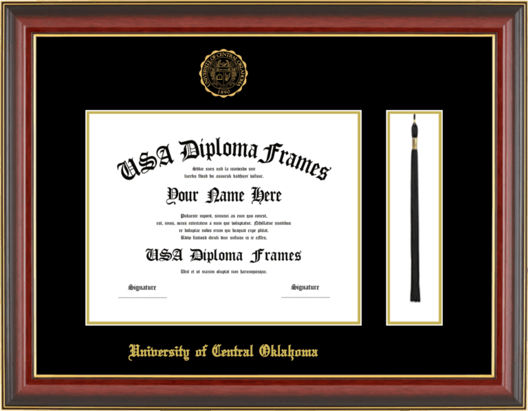 University of Central Oklahoma Diploma Frame with Tassel – Cherry Mahogany Gold Trim Glossy – Black and Gold Mat