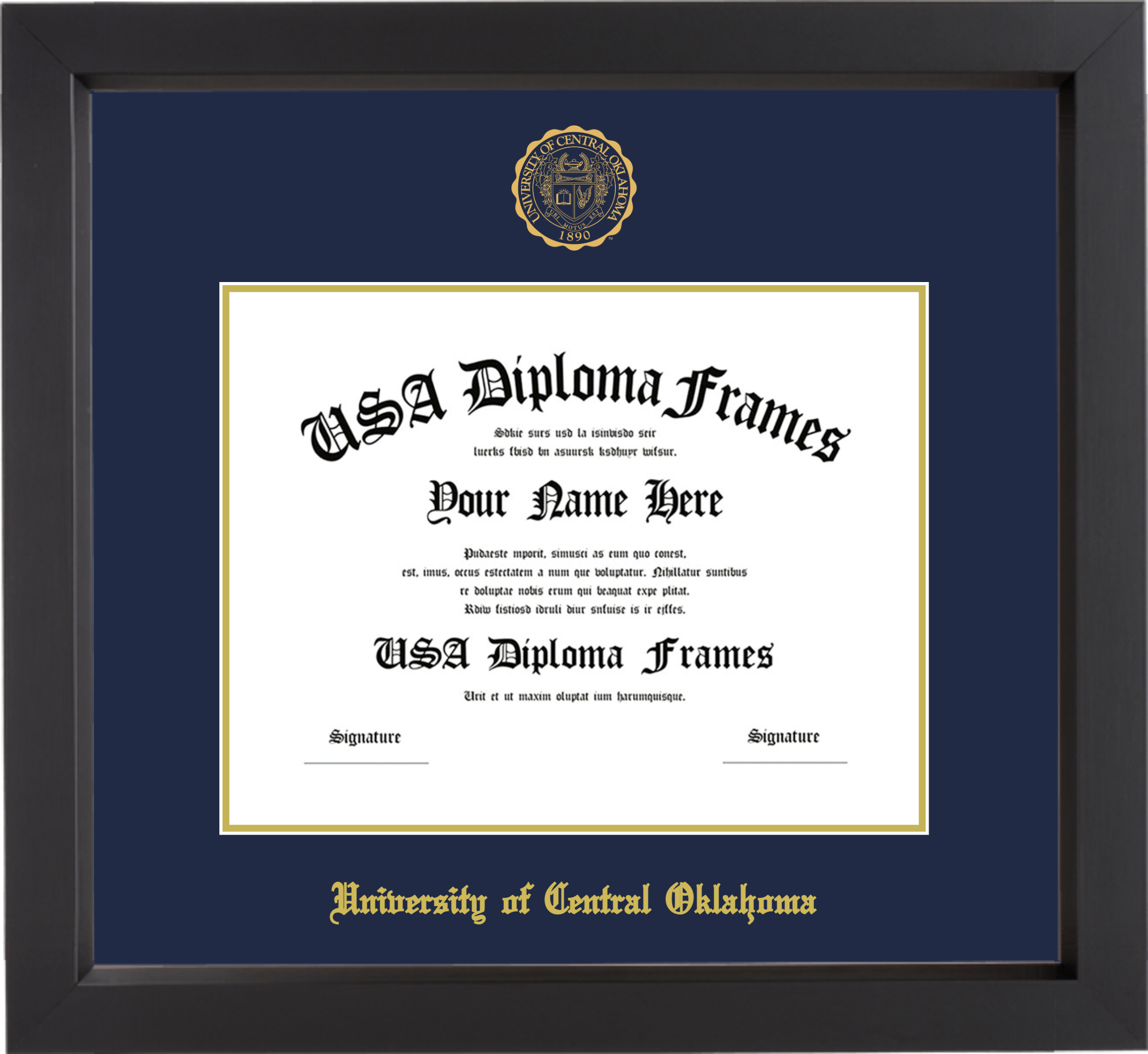 University of Central Oklahoma – Single Horizontal Document ( Diploma ) – Black Matte – Navy Mat – Gold Accent Mat – With Seal(University Seal Gold) – With Gold Embossing (University of Central Oklahoma)