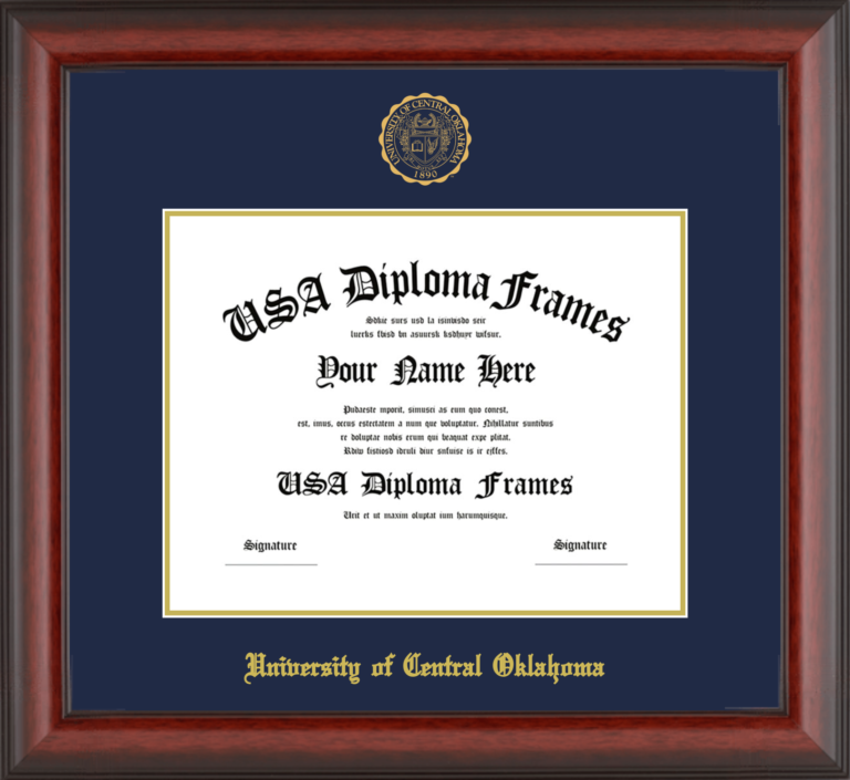 Want to explore more styles? Browse our full range of diploma frame layouts, or visit the University of Central Oklahoma to view options available for your school. Looking for a fully personalized design? Try our custom Frame Builder and create a frame that’s uniquely yours.